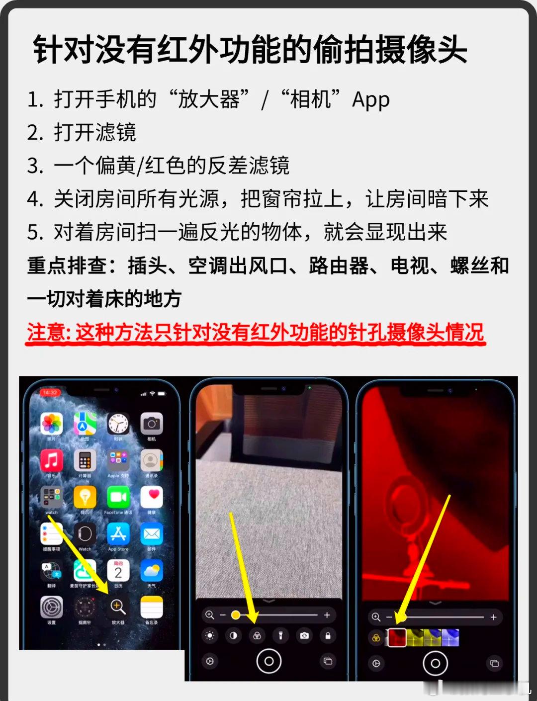 这种只能针对没有红爱功能的整孔摄像头,不过也算是多了一个工具,有时间的就试试看吧。