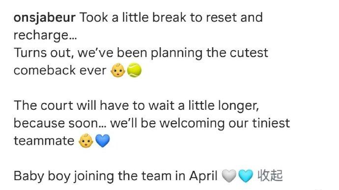 “回归赛场还要再多等一段时间,因为我们即将迎接最小的团队成员。”👶 贾巴尔宣布怀孕喜讯,她和丈夫将在明年四月迎来第一个孩子❤️ 恭喜!