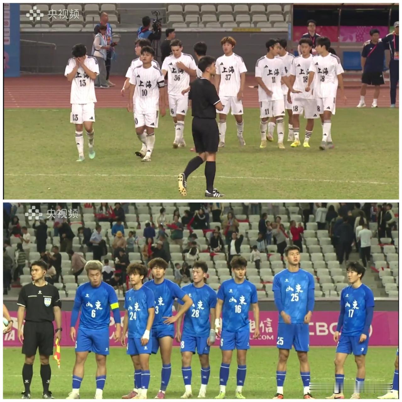 山东U20点球4-5上海,全运会仅获第四。 常规时间,两队互交白卷。点球大战,山东队先罚,结果在第二棒罚丢,错失铜牌。 山东队点球主罚顺序:路俊伟,宫睿聪,王剑聪,张羽桐,付雨轩; 上海队点球主罚顺序:蒯纪闻,姜宏宇,王汉龙,李阳,刘子端。 这一场失利后,突然就释怀了,觉得没有进全运会决赛也是正常的。山东队除了伤病的影响之外,常规时间制造的机会频频浪费,结果自然就是不如意的。