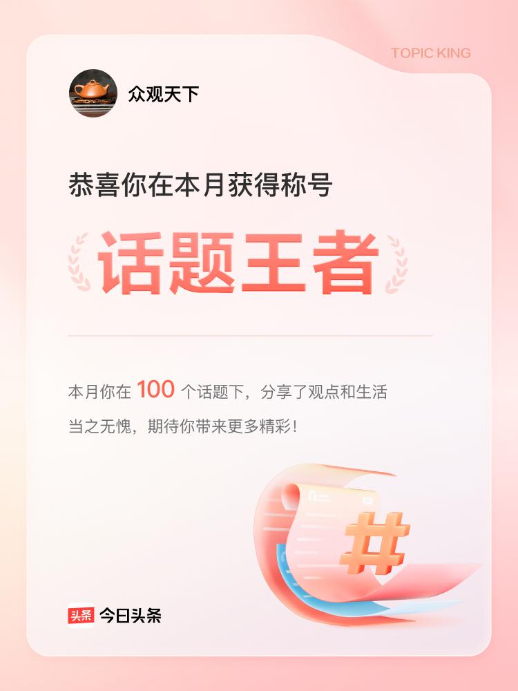 谁懂啊!本月居然拿下了“话题王者”称号,这波属实是意外之喜。 平时就爱跟大家唠唠日常、分享生活里的小感悟,没想到能收获这么多朋友的喜欢和互动。 每一条评论、每一次点赞都记在心里,是你们的热情让我越聊越有劲儿。 这个称号不是我一个人的,是属于每一个愿意停下脚步交流的小伙伴! 接下来也会继续带着真诚分享,解锁更多有趣话题,跟大家一起唠个不停。 你们还有啥想聊的、想看的,都可以在评论区告诉我呀!