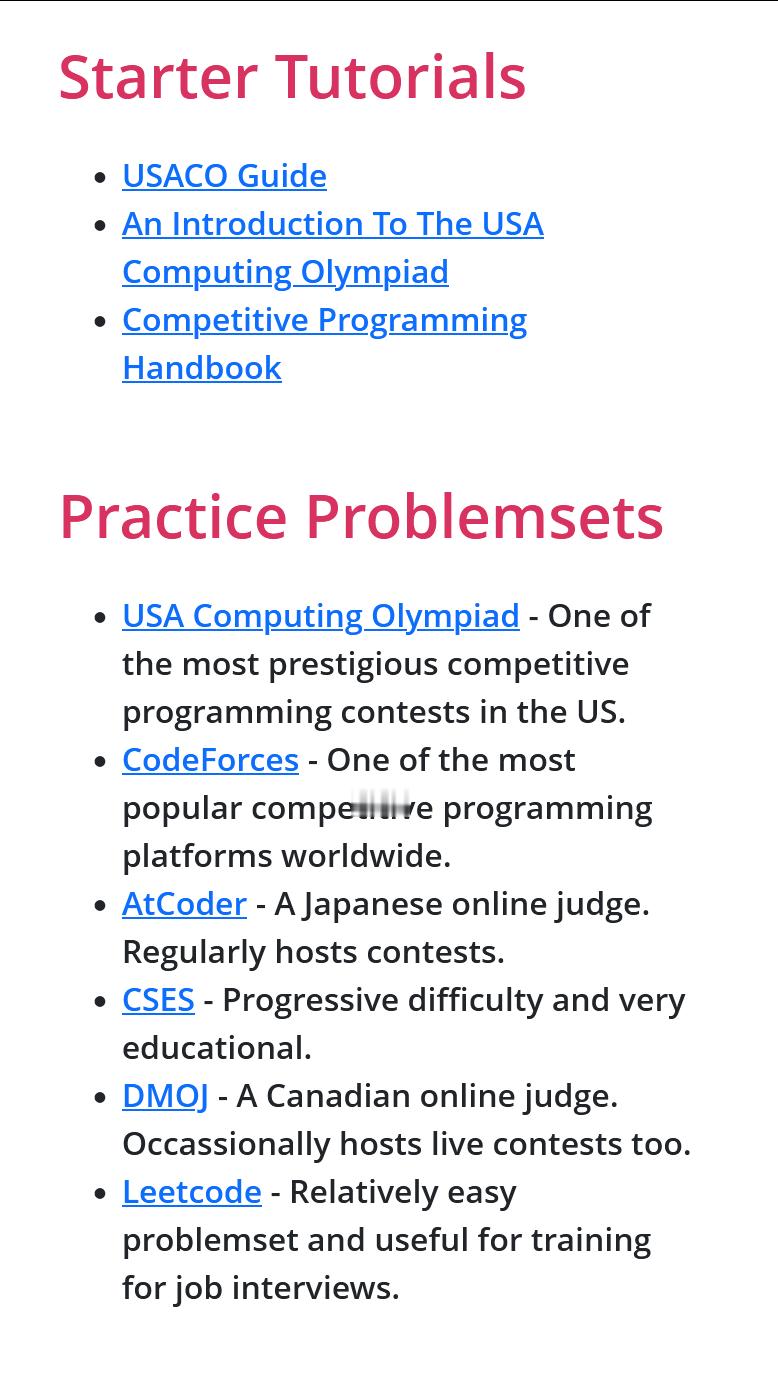 麻省理工整理的一些编程竞赛资源,如奥赛这类的mitit.org/Contest/Resources嗯,leetcode在里面被评价为:“相对简单的题目集,适用于求职面试的训练。”