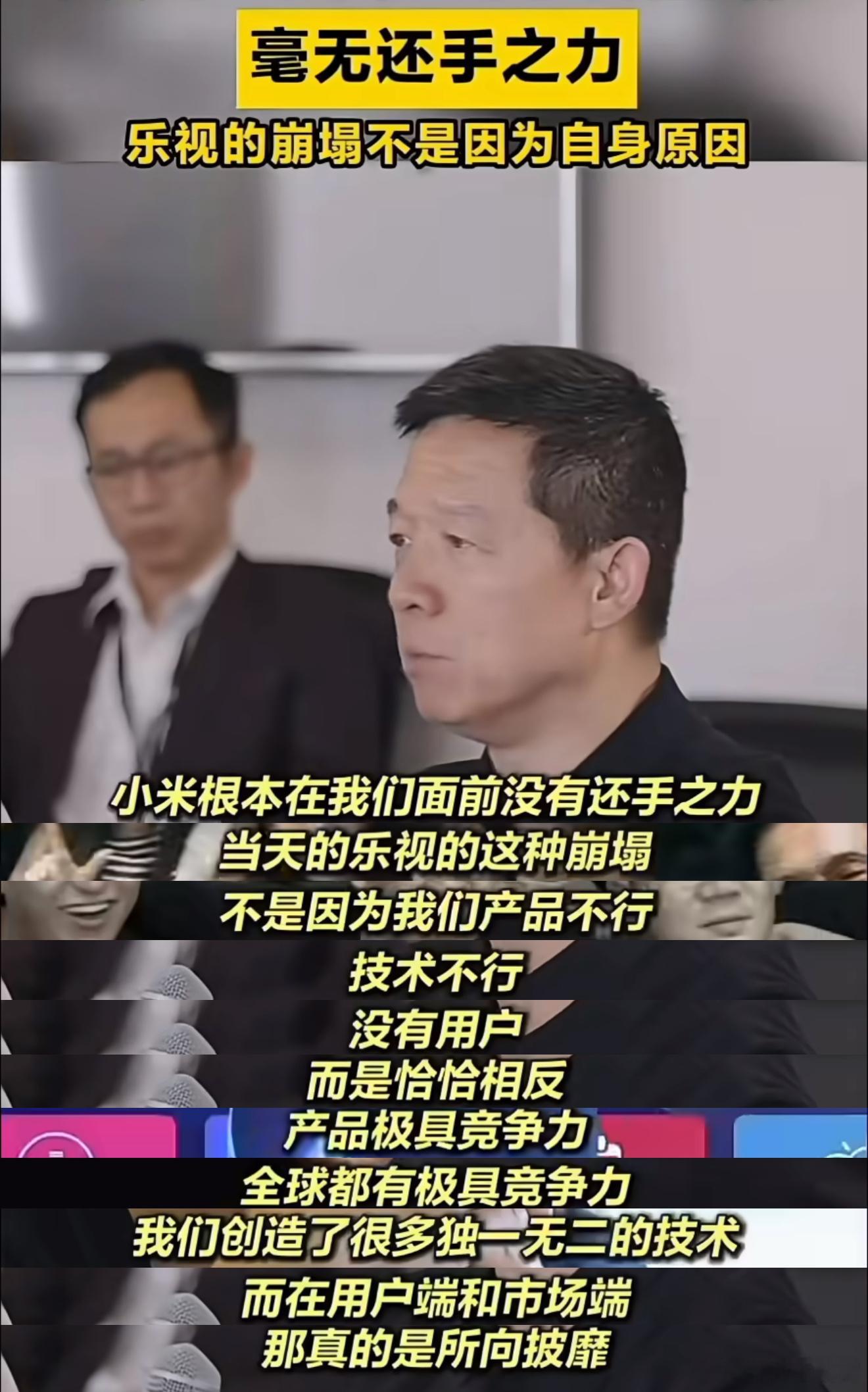 有意思,贾跃亭说;“小米在我们面前没有还手之力,乐视之所以崩塌,不是因为产品不行、技术不行或是没有用户,恰恰相反,乐视的产品在全球都极具竞争力,创造了很多独一无二的技术,无论在用户端还是市场端都所向披靡”。那么问题来了,你们说乐视那么强咋就把自己给玩死了呢?
