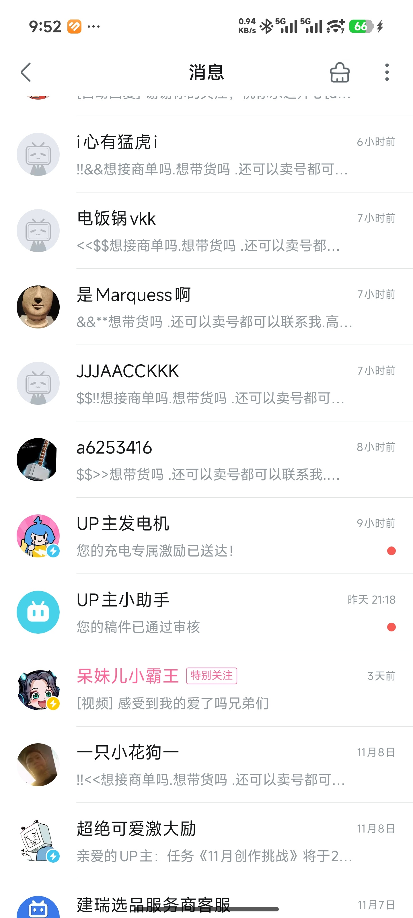 最近B站一堆广告私信。是因为B站收入太少吗,要么接商单要么卖号