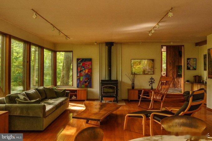 远眺我还以为是流浪者之家36号 兔子跑道路 马尔文,宾夕法尼亚 (别名:费城近郊)一栋“森林里的木头机器”在美国费城向西30公里、海拔120米的切斯特郡山谷里,藏着一栋像巨大树屋的房子。它叫“麦克尔罗伊之家”,1975年落成,占地面积2公顷,建筑面积404平方米,全部用本地橡木、松木和片麻岩建成,是早期“被动节能”实验住宅之一。为什么值得一看?1. 结构像三明治 外墙厚45厘米:外层是10厘米粗木板,中间夹15厘米矿棉保温层,内层再钉5厘米杉木夹板。冬天室外-5℃,室内不开暖气也能靠人体散热和阳光维持在18℃左右。2. 屋顶会呼吸 斜坡屋顶角度45°,利于冬季积雪自动滑落,减少荷载;屋面材料是铝锌合金,寿命可达80年,表面反射率0.65,夏季能把约三分之二的太阳热送回天空,降低空调负荷。3. 采光靠算数 朝南玻璃面积占立面40%,采用双层氩气玻璃,传热系数U=1.2 W/(m²·K)。冬至正午,阳光射入深度6米,可直接照亮并加热客厅混凝土楼板;夏至正午,挑檐伸出1.2米,把高角度阳光完全挡在窗外,室内不需拉窗帘也能保持25℃。4. 节能记录 根据美国能源数据库,同类年份、同面积住宅年均耗电20000千瓦时,而麦克尔罗伊之家仅8000千瓦时,节能60%,相当于每年少烧6吨标准煤,减排15吨二氧化碳。5. 今天的价值 2024年市场挂牌价199万美元,约合每平方米4900美元(每平方米3.5万元人民币)。房子带404平方米、3间卧室、3.5间卫生间、4车位车库,以及一条60米长的森林步道。买家买下它,相当于得到一栋“活的科普标本”——告诉你如何用1970年代的技术,在没有任何智能设备的情况下,把建筑做成一台“木头机器”,靠几何、材料和太阳就能低能耗运行。如果你去费城旅游,顺路看看这栋“木头实验室”,会发现可持续建筑并不一定要最新科技,有时“会算账的木盒子”就够了。
