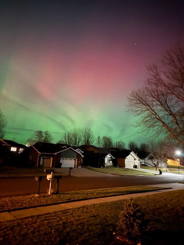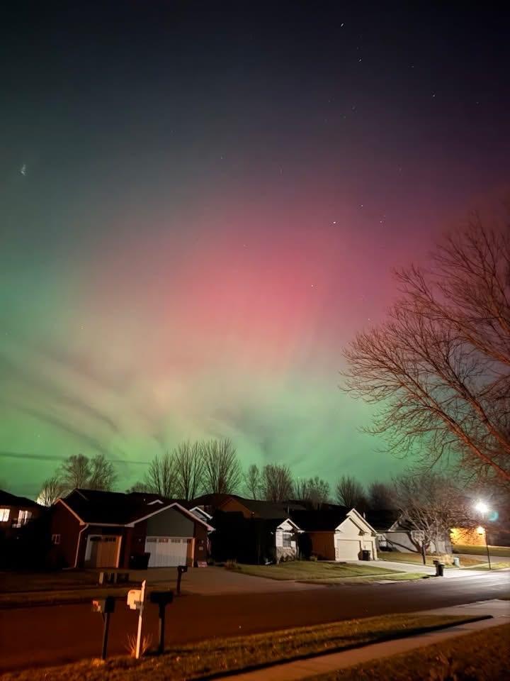 今天狂欢:令人惊叹的北极光! 遗憾昨晚我们错过了。今天全网都在疯传,这是一位网友的照片和感慨: 上帝如此仁慈,让我看到了祂创造的如此壮丽的景象!我简直不敢相信自己的眼睛!真为你高兴,你能在科罗拉多州自家前院看到这些灯光… 真神奇!