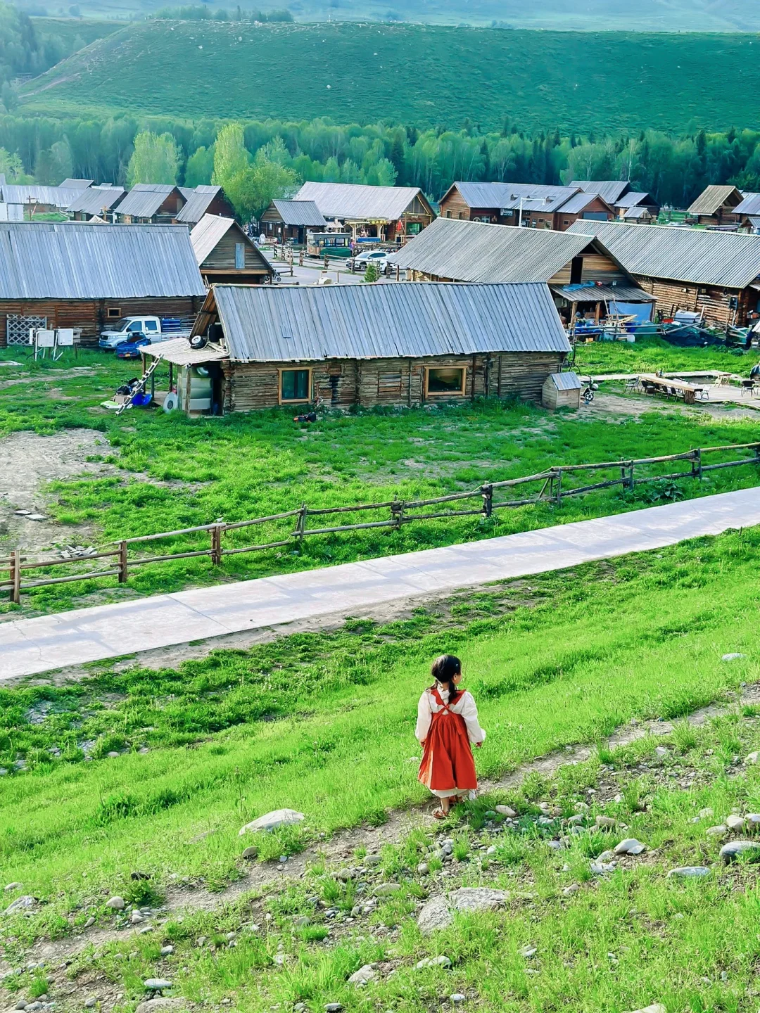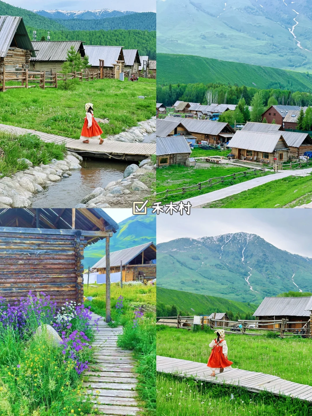 2⃣️禾木村:这里就好像童话里的小村庄,开门就能看到满院鲜花,还有对面的雪山,森林,牛羊~