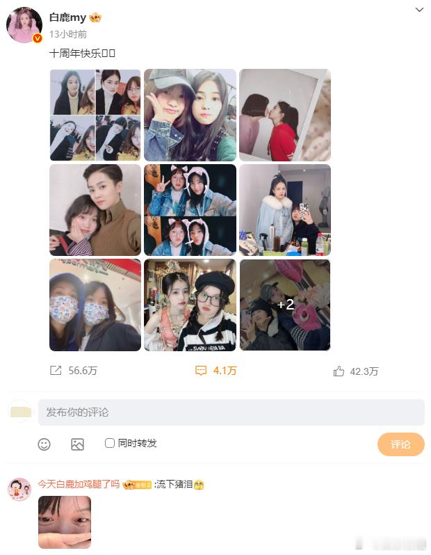 呵呵说白鹿让她好像变成了中彩票的幸运儿,而她更希望对方永远开心健康一鹿呵护最好的友情具象化,你们还会有很多个十年,以后都只会流幸福的眼泪!!