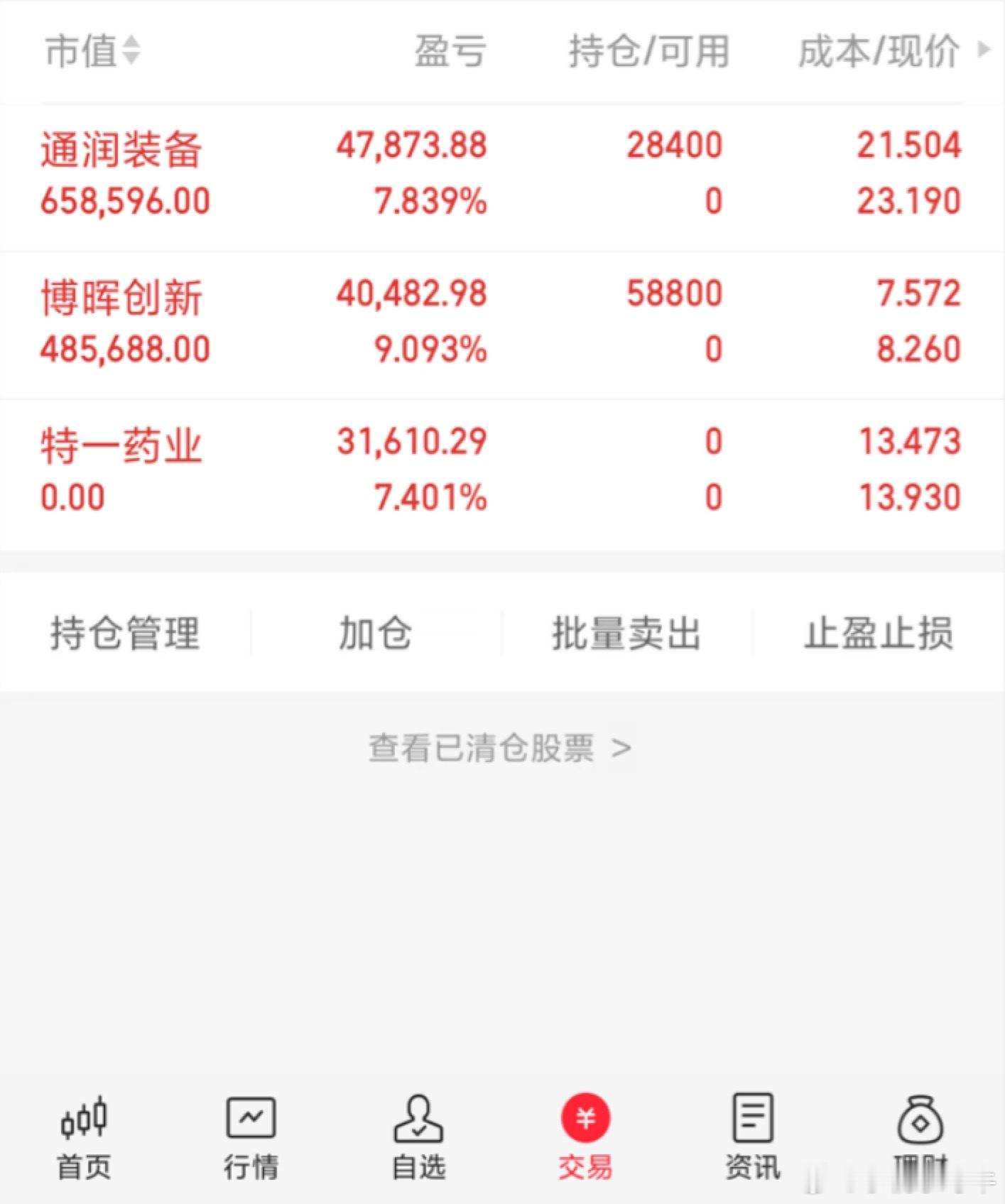 今天买入:博晖创新、通润装备今天卖出:特一药业还是期待有肉吃… 喜欢短线来一起特别声明:这只是我个人的操作记录,不作为任何投资建议,更不是劝 你们有跟买是! 股市有风险,投资需谨慎!