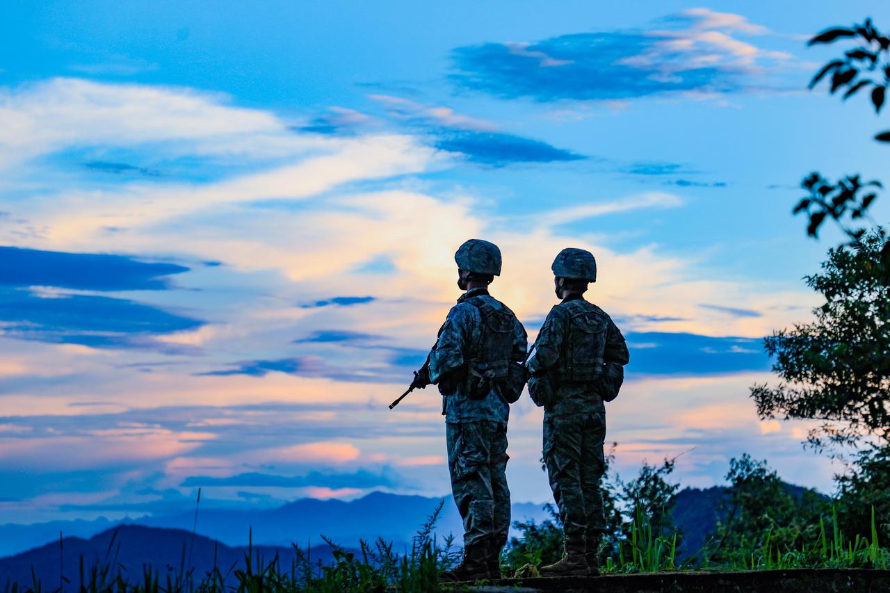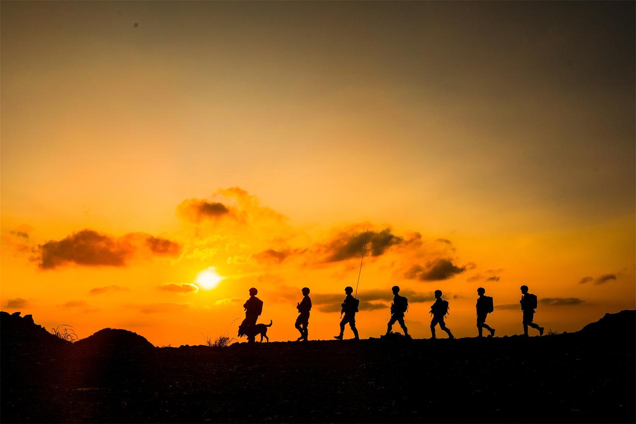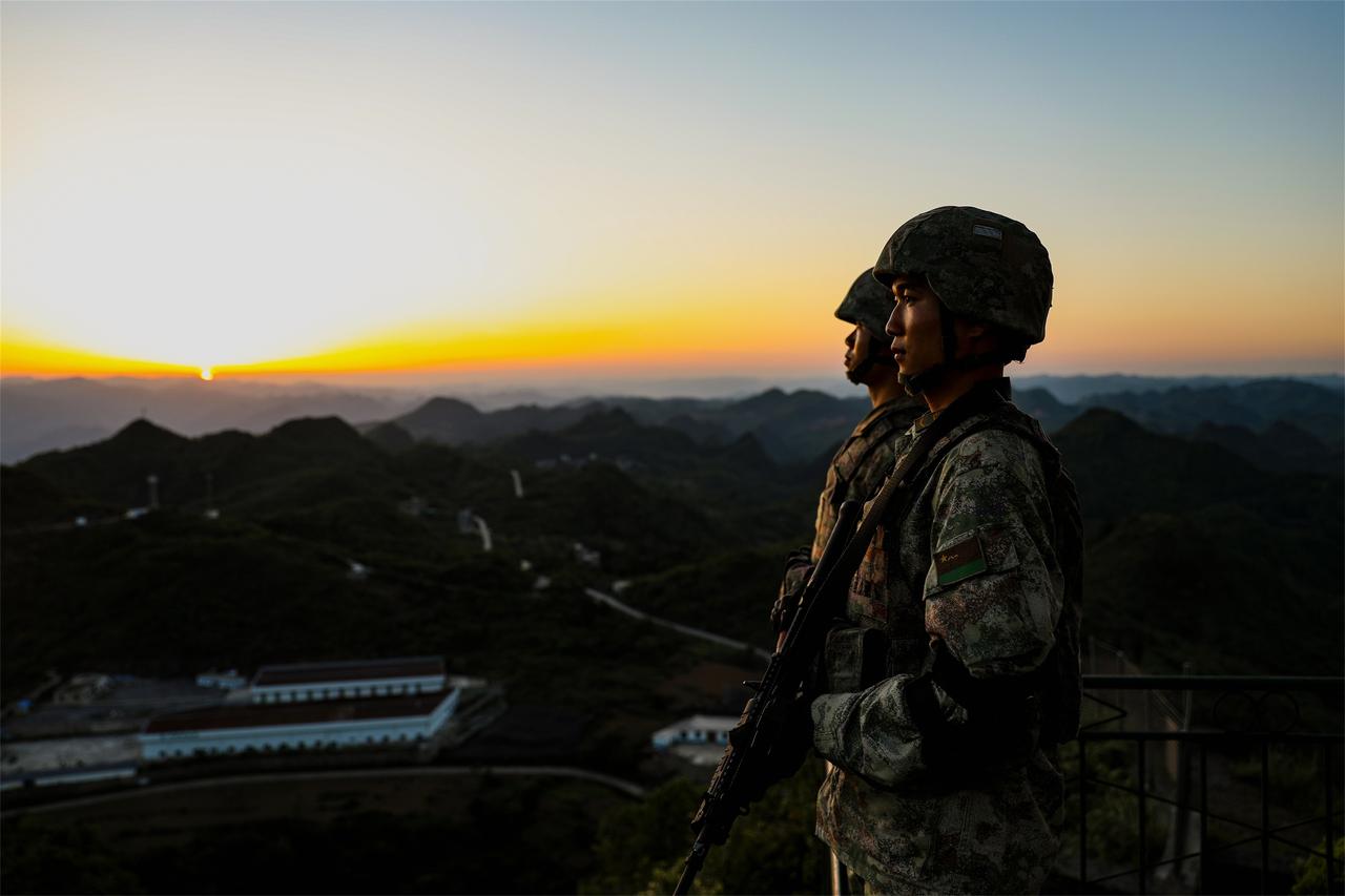 钢枪紧握,眼神如炬。 晨曦映着他们的忠诚, 夕阳刻下他们的坚毅, 每一个脚印都在说:这里,是中国!