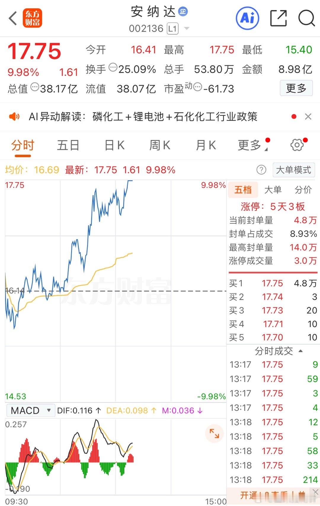 安纳达涨停了,恭喜还在手上的老铁们
