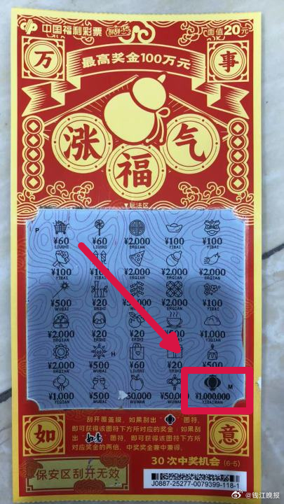 【】11月12日,绍兴镜湖龙湖天街购物中心4楼,绍兴的张女士(化姓),凭借一张20元面值的“万事如意”刮刮乐,喜中头奖100万元。更为幸运的是,她是凭借一张活动赠票中得头奖!原来,目前浙江福彩正在开展“万事如意”刮刮乐950万元赠票活动。活动期间,凡购彩者购买“万事如意”刮刮乐并在单张彩票中中得100元,兑奖时除获得100元现金奖金,还可额外获得50元刮刮乐赠票;单张彩票中得40元,兑奖时除获得40元现金奖金,还可额外获得20元刮刮乐赠票。绍兴这位张女士,就是买“万事如意”时中了小奖,获得了赠票。万万没想到,刮开赠票居然收获了100万元的大奖!这,是近日绍兴彩友收获的第二份幸运。就在张女士中奖之前没几天,11月9日,绍兴柯桥就中出过一个刮刮乐“喜相逢”100万元大奖!据悉,这位幸运儿因路过福彩店时,对绍兴地区正在开展的“喜相逢”刮刮乐赠票活动产生了兴趣,就买了几张“喜相逢”,没想到,最后一张刮出了100万元大奖。售出该中奖彩票的福利彩票站点为:绍兴市柯桥区钱清街道33045302号福利彩票投注站。绍兴福彩的赠票活动是从10月20日开始的,预计持续到11月19日,活动期间,凡购买“喜相逢”系列20元、30元、50元 即开票游戏,单张彩票中得100元赠送30元即开票。(潮新闻 实习生 宋雨萱)