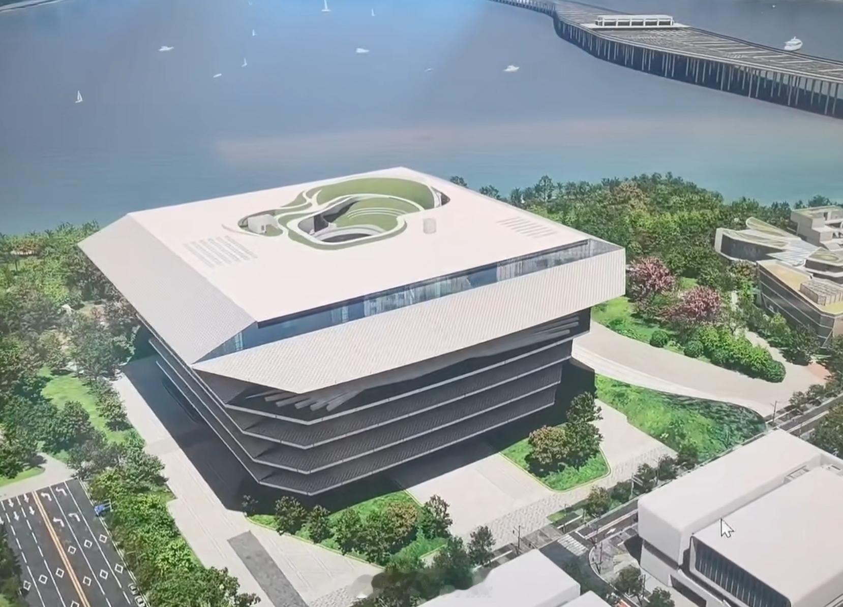 大晚上的,前海博物馆亮灯测试了。只要你走前海沿江高速就能看到它。
