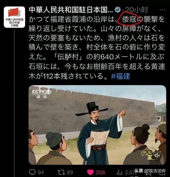 驻日大使馆的X号又更新了,这次直接用“倭寇”两个字,虽然讲述的是明朝的历史,但日本人绝对看得懂。 为了方便日本人看得懂,这次的内容直接使用日文表述,这让他们更加清晰。全文意思如下:昔日,福建省霞浦的沿岸多次遭到倭寇的袭击。由于当地没有山的屏障,也没有天然的堡垒,渔村的人们用石头筑起围墙,把整个村庄变成了石头堡垒... 你知道吗?当时的“倭寇”真不是随便叫的,是明朝史料里实打实的称谓,《明史·日本传》里写得明明白白,就是指那些劫掠中国沿海的日本海盗团伙! 嘉靖年间这事儿闹得最凶,霞浦刚好在闽东沿海,是倭寇北上南下的必经之路,受灾特别严重。 史料记载,倭寇不光抢粮食、钱财,还掳走青壮年当奴隶,老人小孩不顺从就直接杀,沿海村子经常被洗劫得只剩断壁残垣。 当地村民是真被逼到绝境了,官府的卫所兵当时早就不行了,士兵逃的逃、老的老,武器都锈得拉不开弓,根本指望不上。 没办法啊,只能自己救自己,全村人齐上阵,捡海边的巨石、凿山里的岩石,一块一块往上垒,花了好几年才筑起这石墙。 现在去霞浦的大京村、吕峡村,还能看到当年的石墙遗迹,有的地方墙厚能达一米多,村口就留一个窄窄的石门,晚上一关,倭寇再凶也难冲进来。 这些石墙可不是简单的围墙,是村民用命堆出来的防线,墙根下的每块石头,都藏着当年的恐惧和求生的韧劲! 驻日使馆这么说,真不是故意挑事,是历史本来就是这样。 “倭寇”这两个字,从来不是侮辱性词汇,就是对那段历史里特定劫掠者的客观称呼,就像我们说“海盗”一样直白。 特意用日文翻译过去,就是怕他们拿“不懂历史”当借口,毕竟这段历史不仅中国有记载,日本的《筹海图编》里也明确记录了倭寇对中国沿海的劫掠行为。 现在有些日本势力总爱模糊这段历史,要么说“只是小规模冲突”,要么干脆不提,可霞浦这些保存至今的石墙,就是最铁的证据! 正视历史从来不是要记仇,是想让双方都明白,和平是多么难得。 当年村民被逼到筑石墙自保,就是因为没有安宁的环境,现在我们提这段历史,也是想提醒,不管过去多少年,历史真相不能改、不能忘。 使馆用这种方式讲历史,既没添油加醋,也没刻意抹黑,就是把真实发生过的事儿摆出来,让日本人也看看,他们先辈当年的一些行为,给中国沿海百姓带来了多大的灾难。 各位读者你们怎么看?欢迎在评论区讨论。