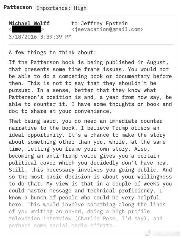 《纽约时报》:今天公布的这批爱泼斯坦文件,最让人感到不安的并不是某一条具体邮件,而是横跨8年、关于唐纳德·特朗普的私人对话所呈现出的固定模式。- 2011年:爱泼斯坦在给马克斯韦尔的信里写道,“还没叫的那条狗是特朗普”,并提到一名受害者“曾在我家和特朗普一起待了好几个小时”,却“一次也没被调查人员提起”。他说自己“已经大概75%弄明白了原因”。- 2015–2016年:特朗普政治崛起之际,爱泼斯坦多次主动向记者毛遂自荐,愿当“特朗普线人”。他给时任《纽约时报》记者兰登·托马斯发邮件问:“你想要唐纳德和穿比基尼的女孩在我厨房的照片吗?”他还描述特朗普曾在自家泳池旁“盯着年轻女孩看”。- 2016年:记者迈克尔·沃尔夫建议爱泼斯坦把特朗普当成“即时反叙事”——用高调反特朗普的姿态,为自己即将爆发的刑事报道争取“政治掩护”。- 2017–2018年:爱泼斯坦开始系统追踪特朗普的财务状况。他指示律师调查海湖庄园的抵押贷款,并称特朗普有一笔“3000万美元的可疑贷款”。其长期会计师还研读特朗普的联邦财务披露表,标注出“债务与收入方面的有趣发现”。- 2018年末:当针对爱泼斯坦的调查升温时,一名同伙发短信说调查人员“只是想搞垮特朗普”。爱泼斯坦回复:“没错,真荒唐。因为能搞垮他的人是我。”- 2018年另一封邮件里,拉里·萨默斯问爱泼斯坦,特朗普会不会“陷入疯狂”。爱泼斯坦答:“他已经在边缘”,并把艾伦·德肖维茨比作“离边缘再远几英尺的人”。把这些碎片拼在一起,文件呈现的爱泼斯坦并非与特朗普“点头之交”,而是一个:- 常年与权贵圈内人谈论特朗普- 自认掌握杀伤力信息- 系统研究特朗普财务- 对外宣称“我能搞垮他”- 并把特朗普视为自己关系网里异常脆弱的一环这些全是爱泼斯坦亲笔写下或打出的字句,时间跨度近十年。他是否在吹牛、夸大,还是说真话,目前无从得知。但模式之连贯,以及记者、律师、金融家、政客对他的兴趣程度,已不言自明。这是公众首次看到这些对话。更多内容还在路上。