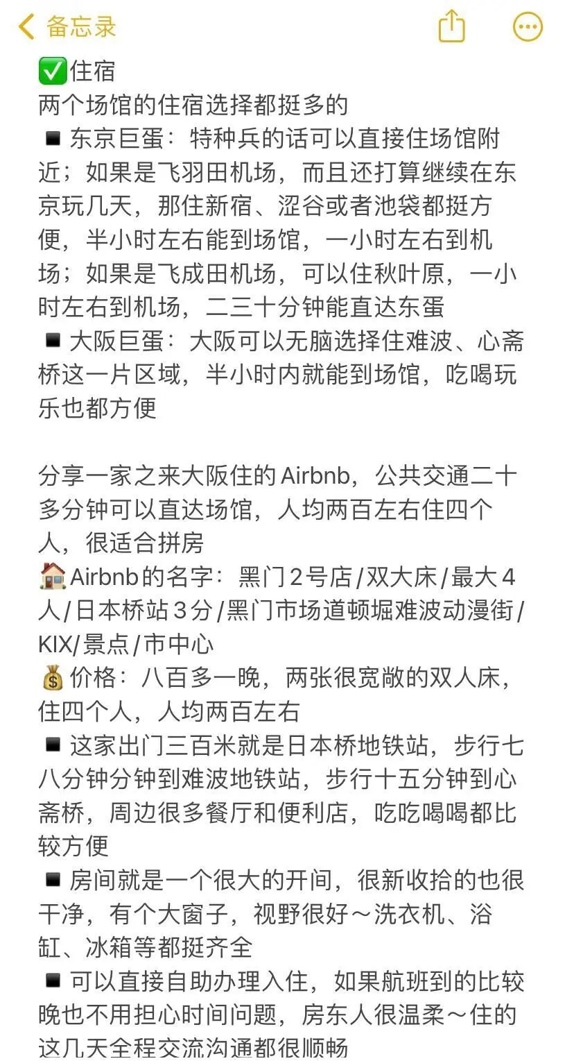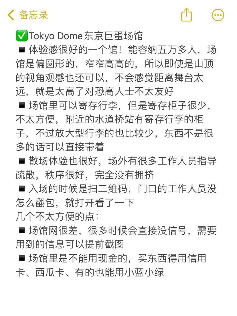▪️东京巨蛋:特种兵的话可以直接住场馆附近;如果是飞羽田机场,而且还打算继续在东京玩几天,那住新宿、涩谷或者池袋都挺方便,半小时左右能到场馆,一小时左右到机场;如果是飞成田机场,可以住秋叶原,一小时左右到机场,二三十分钟能直达东蛋
