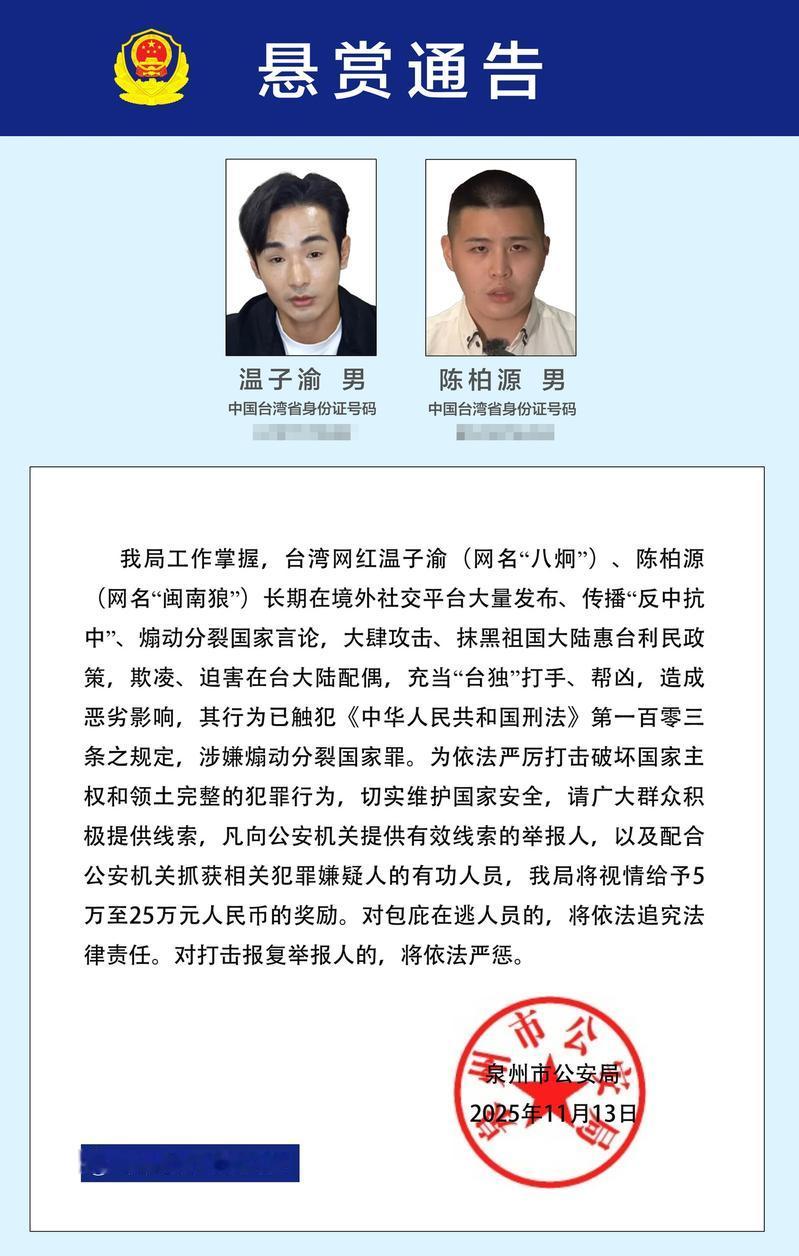 沈伯洋温子渝陈柏源符合「双重归罪」原则 继重庆市公安局于四月二十八日发布警情通报宣布,为坚决打击沈伯洋通过发起、建立「台独」分裂组织「黑熊学院」等方式从事分裂国家犯罪活动,决定对沈伯洋涉嫌分裂国家犯罪立案侦查,依法追究其刑事责任之后,福建省泉州市公安局昨日也发布悬赏通告,懸賞五万至二十五万元人民币的奖励,鼓勵积极提供线索以及配合公安机关抓获台湾网红温子渝(网名「八炯」)、陈柏源(网名「闽南狼」)的人員,通告并展示两人照片以及台湾身份证号。 除国台办发言人先后对这两项公安警示进行权威性诠释之外,中央电视台也充分运用其媒体特质进行更深入具体的解读。而且,央视针对沈伯洋案的专题报导是在重庆市公安局的警情通报发布十一天后「出街」的,而隶属于央视的新媒体品牌《日月谭天》,则是高效率地于泉州市公安局发布悬赏通告的同一天亦即昨日,就以大量的具体事实,揭露温子渝与陈柏源两人长期在境外社群平台大量发布、传播「反中抗中」、煽动分裂国家言论,对两岸关系造成恶劣影响的犯行,甚至连两人在今年八月因利益问题决裂,短短数月就演变成「狗咬狗」的情况也巨细无遗地描述。这就更为佐证了这些「爆料」,都是实实在在而且是没有「偏执」的。 《日月潭天》更直接公布了「八炯工作室」的地点,登记在台北市松山区民生东路,核心成员包括助理兼策划廖X帆、策划傅X皓、摄影邱X霖。办案人员向《日月谭天》透露,之所以没有将这些人列入悬赏通告,是希望给予迷途知返、改过自新的机会,体现了大陆「依法惩独」针对的始终是极少数人,包括温、陈这种充当「台独」打手、帮凶实施迫害台湾同胞恶劣行径的首恶分子,不针对、不涉及广大台湾同胞。 这就不但是凸显了大陆既定的「首恶必惩,胁从不问,立功者受奖」刑事政策原则,而且也严格区分两类不同性质的矛盾,亦即当前大陆对「台独」思想和「台独」行为还是有区别的,针对的是「有具体行动」、「有组织」的「台独」分子,未来还可能会常态化;而对那些只有「台独」思想甚至言论的人士,则是以教育为主。这个政策宣示,将有力地化解民进党当局尤其是一小撮「顽固台独分子」,从中以混淆捆绑的手法,恐吓认识不清的一般民众的图谋。 从具体技术上看,重庆市公安局对沈伯洋是发布「立案侦查」的警情通报,并未提到进行悬赏;而泉州市公安局则是发布「悬赏通告」,吁请广大群众积极提供线索,给予有功人员五万至二十五万元人民币的奖励。这就显示,重庆市公安局对于沈伯洋进行的前期罪证搜集工作,已经基本结束,进入「立案侦查」阶段,下一步就是将案宗移送重庆市人民检察院,由后者提起公诉。 而泉州市公安局对「八炯」和「闽南狼」发布的是「悬赏通告」,显示泉州市公安局虽然已经对两人的犯行有所掌握,但仍然在继续搜集证据阶段。 不管怎样,这都折射了大陆在执行《中华人民共和国刑法》尤其是《关于依法惩治「台独」顽固分子分裂国家、煽动分裂国家犯罪的意见》上,不止是「说说」而已,而是已经「实牙实齿」地进入到具体的行动执行进程。而无论是按照「属人管辖法」还是「属地管辖法」的原则,大陆的执法及司法机关都有权执法及行使司法权。这并非是什么「长臂管辖权」,因为台湾地区就是中华人民共和国的一部分,并非「国与国关系」。 正因为如此,对沈伯洋、温子渝、陈柏源发布警情通告的,是大陆地区的地方公安局,而不是由中央公安部作为,这就凸显了台湾地区只是一个「地方」行政区划。然而,当他们的足迹踏出台湾地区时,中央公安部有权透过国际刑警组织机制,向其发出「红色通缉令」,并请求相关国家执行国际刑事司法互助机制及所签署的引渡协议,将其缉捕并引渡给中国。就像经浙江省温州市公安局、辽宁省大连市公安局、福建省泉州市公安局、福建省龙岩市公安局、重庆市公安局分别对缅甸北部以家族为组合的的电信网络诈骗犯罪集团重要头目进行悬赏通缉,在将他们引渡回国后由地方法院进行审判那样。 有台湾人士以「政治犯不引渡」及「双重归罪」等原则,「夜过坟场吹口哨」地自我安慰及壮胆。其实,沈伯洋、温子渝、陈柏源的所作所为,已经超逾了「政治犯」的范畴,是典型的「刑事行为犯」,包括沈伯洋的行为,已经涉及到「恐怖主义」的性质;而温子渝、陈柏源迫害陆配的行为,也触犯了联合国关于保护妇女儿童的国际公约的相关规定。这些犯行,在绝大多数国家也是属于刑事犯罪行为,因而符合「双重归罪原则」。 而且,美国总统特朗普已经下令司法部长邦迪调查索罗斯父子及其旗下的开放社会基金。而沈伯洋的资金来源,部分就是来自索罗斯的开放基金。索罗斯父子长期支持民主党,并与拜登、佩洛西都私交甚笃。美国数百万人上街抗争,各城市的暴力犯罪率直线上升,被特朗普认定索罗斯父子是最大「金主」。因此,即使是站在特朗普的角度,沈伯洋也具有与索罗斯「勾勾缠」的嫌疑。