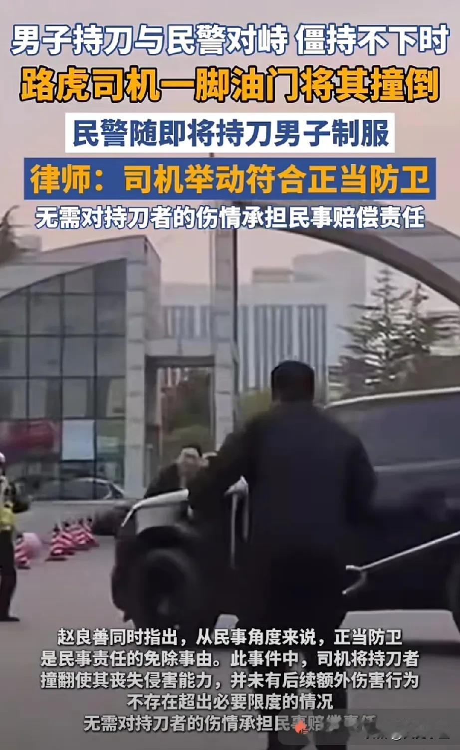 大哥开路虎z人的行为属于正当防卫,免责!这也是我们希望看到的处置结果,一个让好人好事能够继续下去的生动案例! 当人们看到有不法行为发生时,大多选择观望,心中一是想多一事不如少一事,二是害怕出手会惹祸上身。路虎司机这次仗义出手,开车勇撞拿刀男子,体现了其内心正义的一面,不怕事,敢担事,关键时刻敢于出手!值得我们敬佩的真男人!