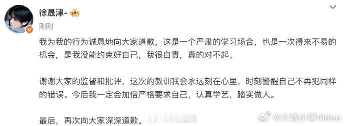 【】11月13日, 在2025星辰大海演讲直播时睡着了,引热议。对此,徐晟津发文道歉:“我为我的行为诚恳地向大家道歉,这是一个严肃的学习场合,也是一次得来不易的机会,是我没能约束好自己,我很自责,真的对不起。谢谢大家的监督和批评,这次的教训我会永远刻在心里,时刻警醒自己不再犯同样的错误。今后我一定会加倍严格要求自己,认真学艺,踏实做人。最后,再次向大家深深道歉。 ”