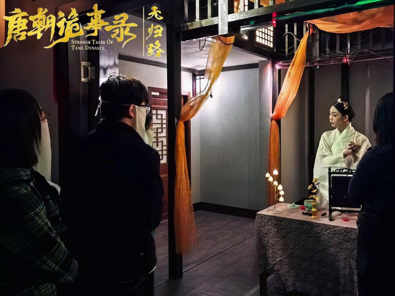 看沉浸式《唐朝诡事录》 唐诡这个沉浸式剧,让我看了几个小时,不知道疲惫也不知道时间。就跟着想看的演员走,太有意思了,以前并没有玩过,来这里是需要一点点体力的。看剧过程中,遇到看不懂,然后通过剧情舞蹈画面与语言描述,能分析一点,带着悬疑推理的视角,我脑补了剧情。可以选择跟着谁看,我期间跟着几个主角转场,但是同时场内会有几处剧情在发生,所以你一次性不可能看全,你在这看的时候,听到别的地方传来刺激的声音只能痒痒了。看热闹不嫌事大的中国人,作为一个捕快,我没有破案成功,我就像一个愣头青,带着“懵逼树下懵逼果,懵逼树下你和我”的心态,看完了演出。最后结尾有剧情解析和提问答疑环节,终于把我的悬念解开了。我明白了,作为一个捕快,真的有很多艰难与不容易。我不是一个合格的捕快,我要努力提升我的大脑,做到分分钟破案。本场演出,通过我看到的几十个剧情片段,看到精彩纷呈的舞蹈艺术和感受到近距离的舞台魅力。震撼,是我不得不说的词汇!真的从来没有想到可以离演员这么这么近。其实有几处表演特别有意思,是特别高雅的表现形式,让你从舞蹈角度看复杂的男男女女关系,很现实又带着点批判,这是这个世界的无奈, 也是底层人民的悲哀。强烈推荐看的沉浸剧。已经演出近千场了,希望一直演下去,让更多的京城来宾能看到这精妙绝伦的演出。
