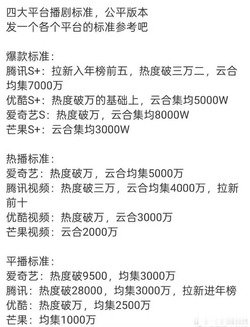 四大平台播剧标准?现在光看破万还不行吧集均不能低