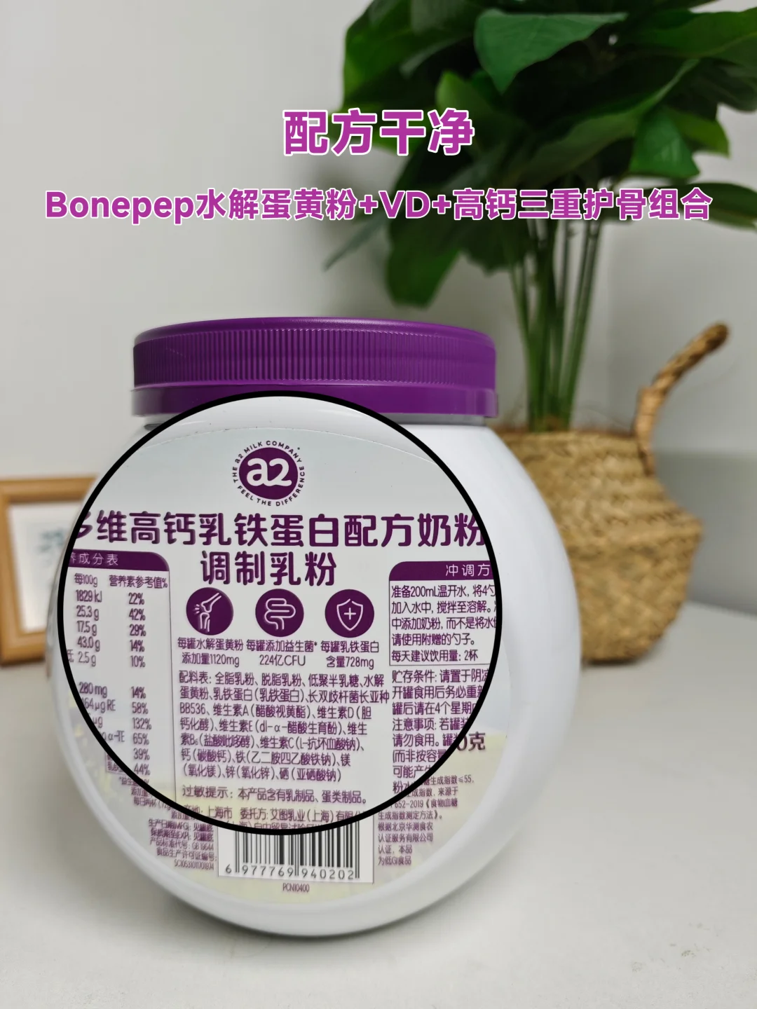 ✔️三重护骨成分:每 100g 含 1111mg 高钙(1 杯≈补 330mg 钙),搭配维生素 D3促吸收,还加了进口 Bonepep 水解蛋黄粉(活性纯度 80%+)