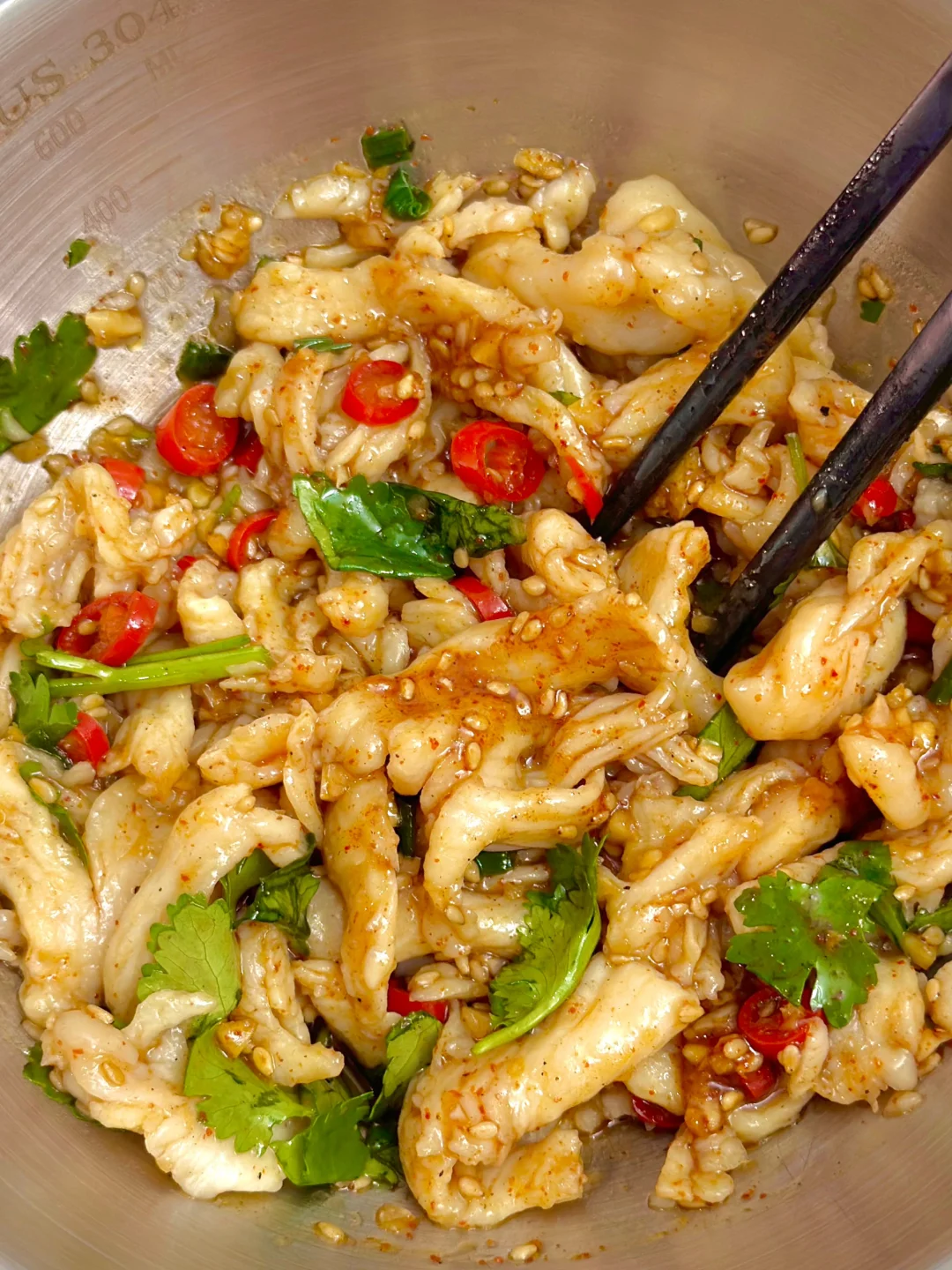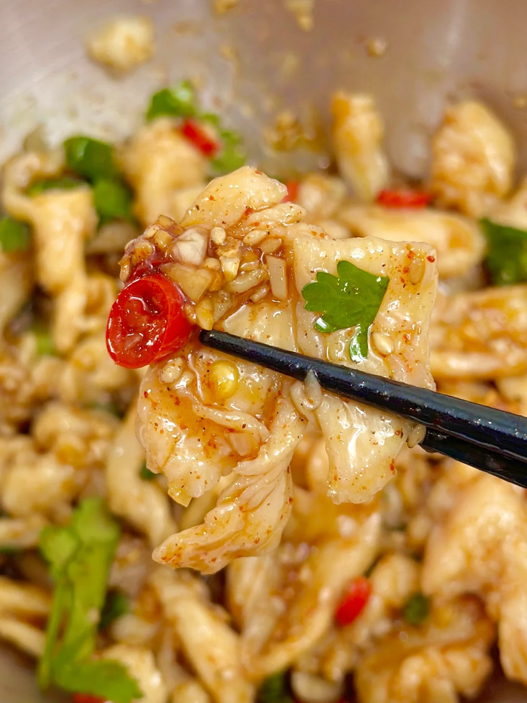 分享巨好吃的酸辣鸡胸肉片!真的绝!鸡胸肉巨嫩!拌了一盆嘎嘎香!搭配酸辣解馋的酱汁,真的太香了!低卡饱腹!吃完巨饱腹! [害羞R]做法如图,姐妹们快去安排起来吧!