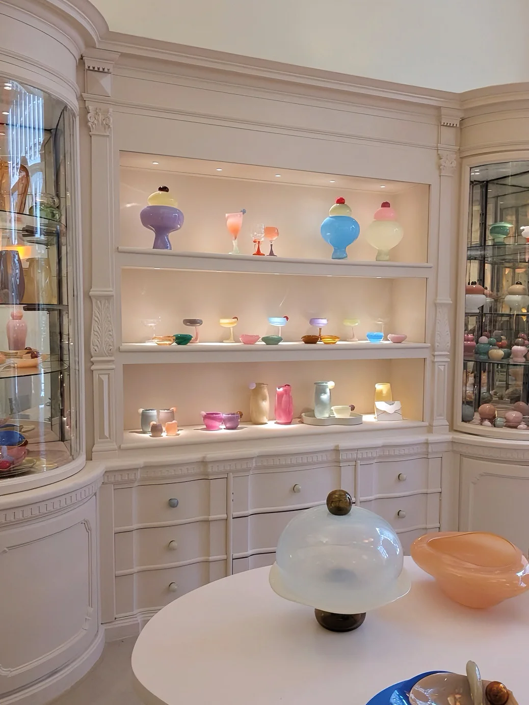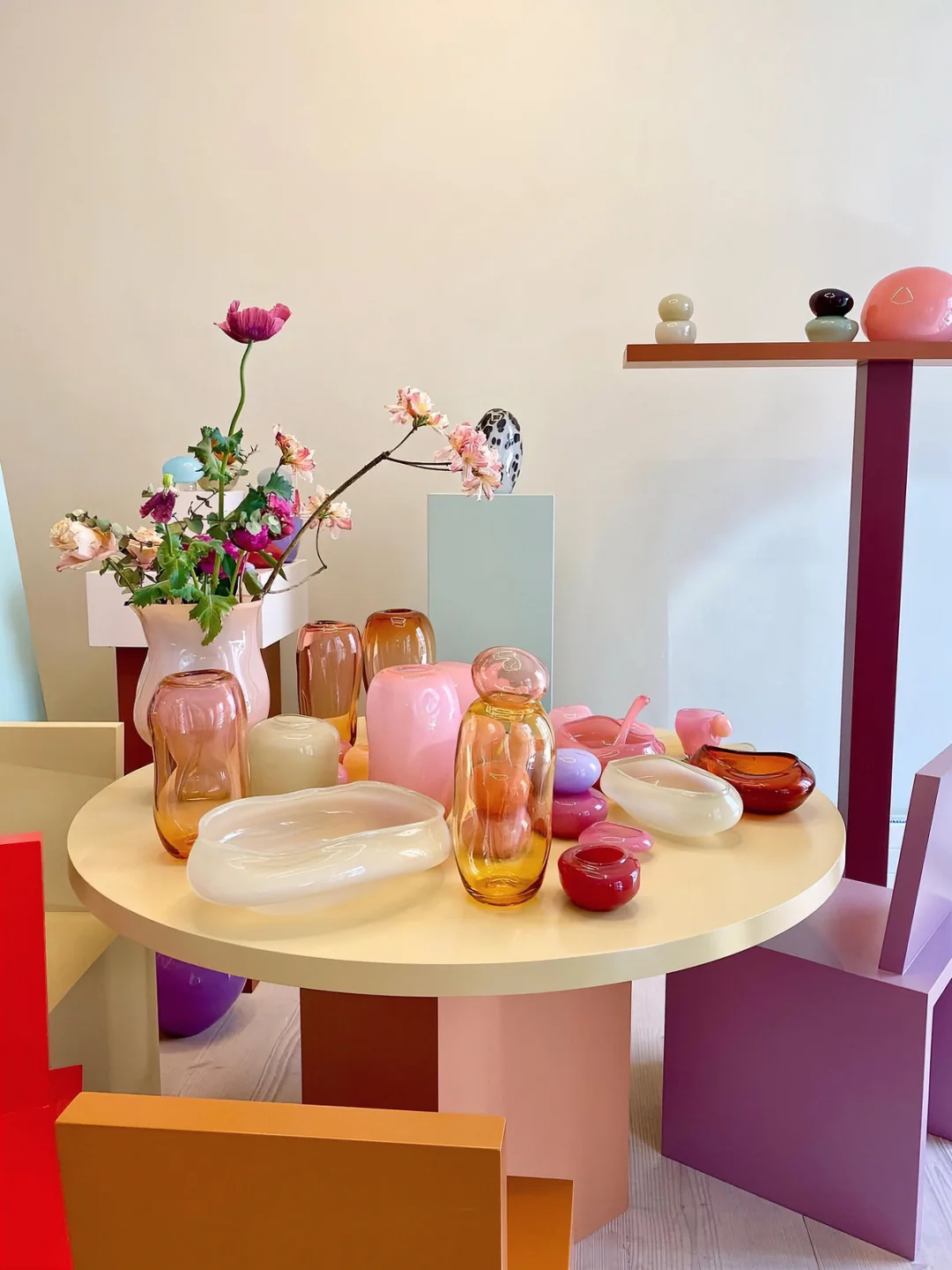 她以制作精美绝伦的手工吹制玻璃器皿而闻名,特别是她的“甜品系列”。走进她的工作室兼精品店,就像踏入了一个糖果色的梦境。每一件作品都是独一无二的艺术品,给人一种这些玻璃制品是甜味的感觉~