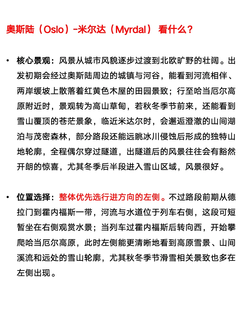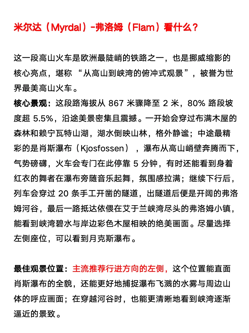对于从奥斯陆-Myrdal,Myrdal-Flam这两段火车具体👀什么,可以参考P2和P3。
