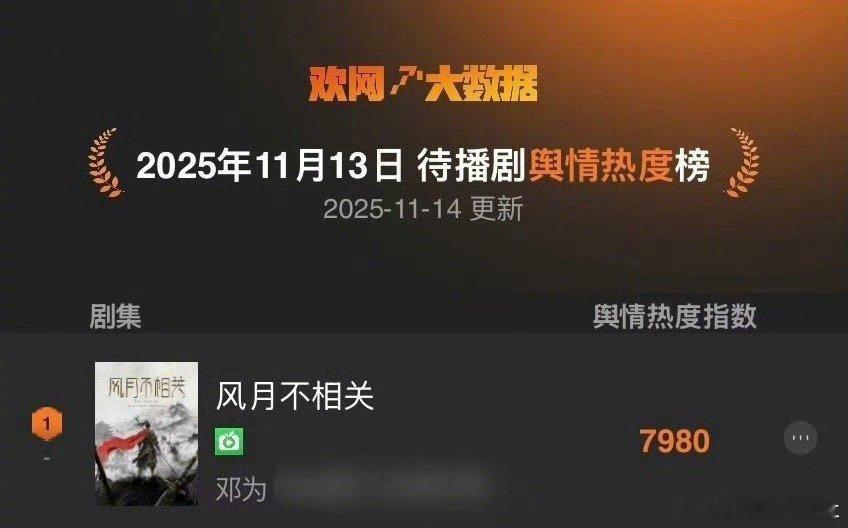 邓为《风月不相关》拿下艾漫热度指数、活跃受众、角色榜三榜第一,殷戈止角色贡献比1