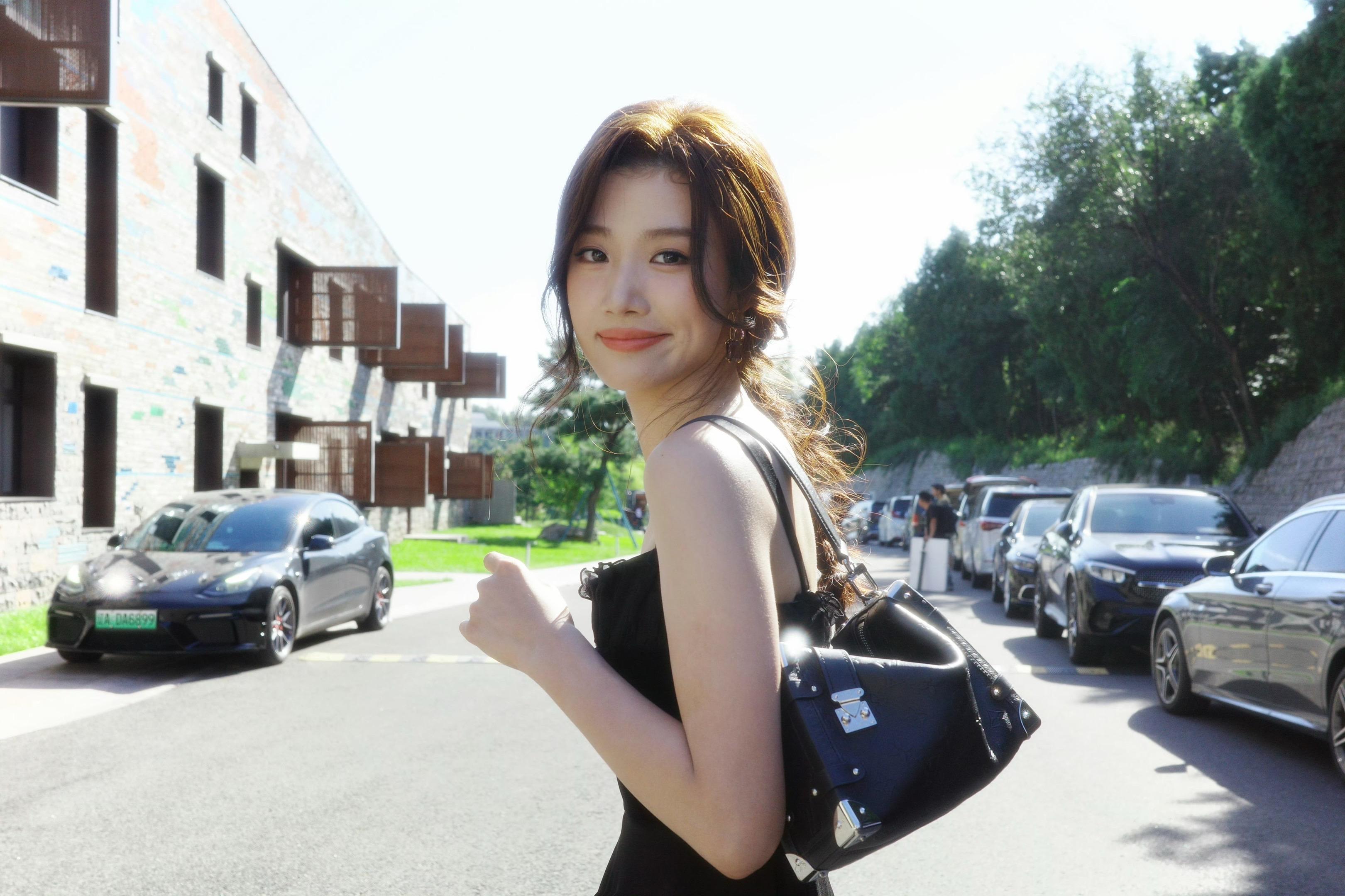 吴艳妮在成都穿着短裤大腿看起来很粗壮,表情自信又张扬