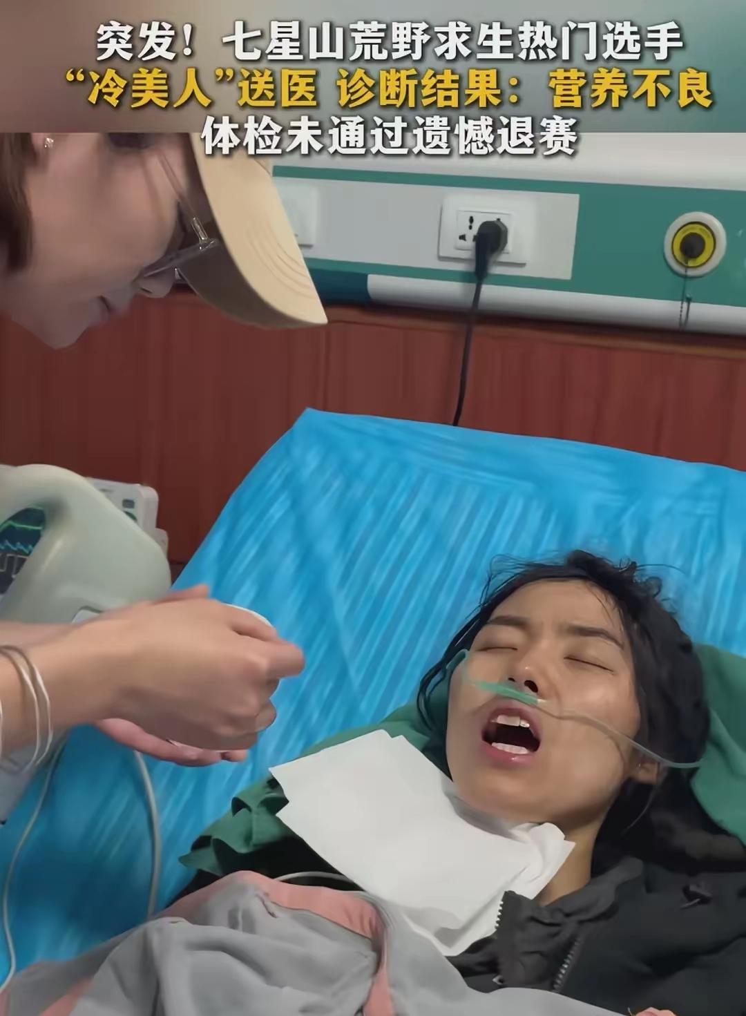冷美人退赛是在“意料之中”的, 不是因为她不够坚定,也不是因为生存困难,而是因为晕倒了到医院“体检没合格”。 冷美人真挺厉害的,扛过了两次生理期,在发热39度的情况下依然坚持蒸野菜,到这步因为营养不良退赛了真挺可惜的。 但是每天在野外生存本身就很困难,没有营养也解决不了吃、住,全靠身体硬挺是不行的,看其他参赛的选手都睡上了自制床,升上了火,能解决温饱和住宿就赢了80%。 不管怎样,都佩服冷美人的毅力,她是我心目中永远的“冠军”,希望冷美人好好休息,身体更重要。 (图源网络)