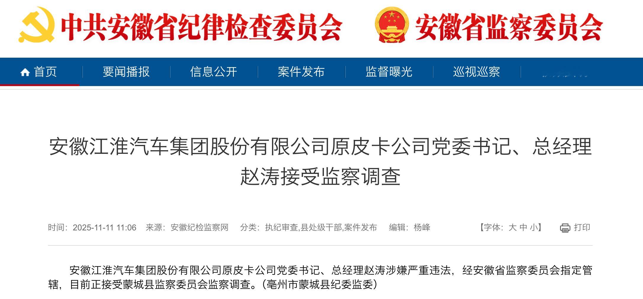 通报!江淮皮卡原党委书记、总经理赵涛被查