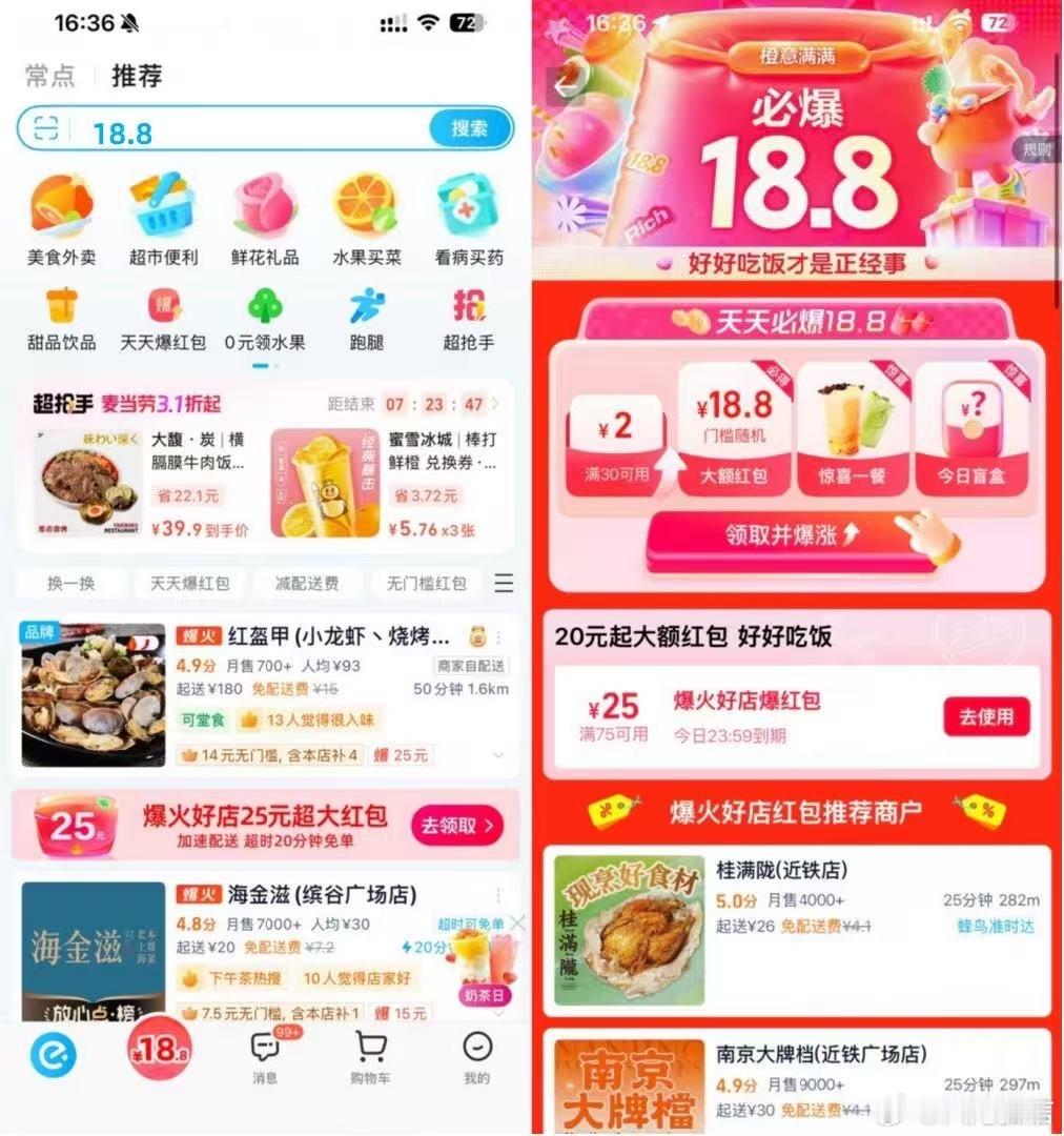 打工人的干饭乐快来自饿了么!18.8元红包搜一搜能就领,工作餐减完超划算,下午茶奶茶完减更省钱,这操波作太“橙”功,打工快人冲~