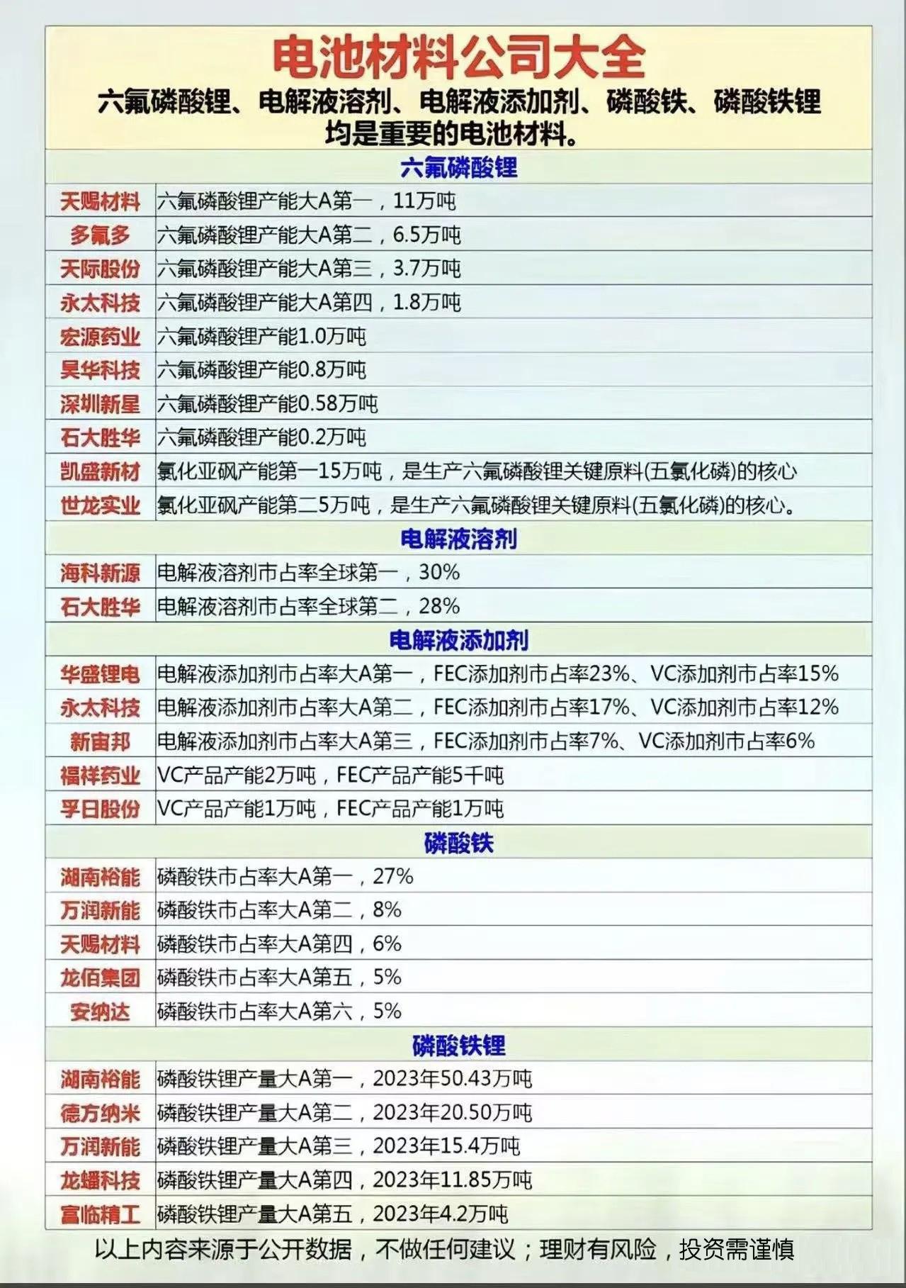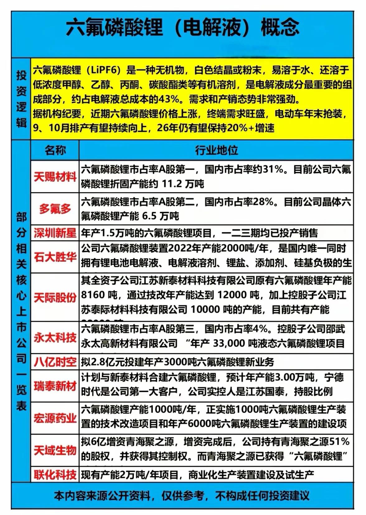 六氟磷酸锂(电解液)+固态电池+电池材料+锂电池产业链+能源金属
