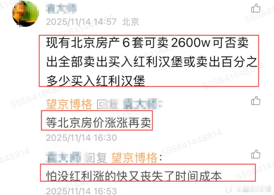今天净值出来了。场内ETF账户亏损4.0万(资产240万);场外基金账户今天亏损8.0万(资产560万);两个账户合亏损12万,周一盈利6.7万,周二亏损2.0万,周三盈利3.0万,周四盈利9.8万,周五亏损12万。本周累计盈利5.5万,谢天谢地本周还有盈利。今天市场回调中,发车了安心汉堡。蜘蛛侠,后来叫科技侠,估计知道这个名字的人不多,买了这个组合的人更少了。 这个是2019-2020年搞的科技组合, 2021年由于各种原因不是我主理了,但还持有,今年满仓国产算力与光模块,累计收益超120%。博格把科技侠清仓了,觉得目前国产算力与光模块稍微有点高。 获得的资金一部分还房贷、一部分纯债汉堡当储备资金。 今天港股回调,一部分放安心汉堡了。如果没有还房贷这种问题,又不想空仓的。可以等资金到账都买成安心汉堡。最近博格持仓红利汉堡又创新新高了。在科技成长的回调的大背景下,大家看到红利稳健上涨,又开始思考买红利了。私域大户说:“北京房产6套可卖2600万,可否全部卖出买红利汉堡,或者卖出几套买红利汉堡?”这把博格都整不会了,北京房子已经跌了很多,要不等房价涨涨再卖?大家觉得呢?PS:安心汉堡与红利汉堡,都是博格持仓的两个投顾组合。A股今天66.82度;港股今天42.59度;最近恒生科技持续回调,市盈率已经低至22.47倍,温度也降低到25.98度了。统计数据不易,大家点赞支持。