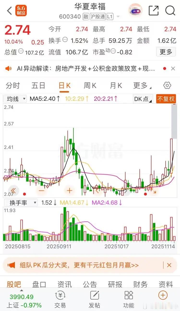 低价股华夏幸福OR永泰能源华夏幸福一字板涨停收盘报收2.74元每股,成交金额1.62亿元。周一继续涨停板永泰能源涨停板收盘报收1.79元每股,成交金额43.87亿元。周一挑战1.85元近期高点,突破就有可能突破2元每股。沪指指数再度跌破4000点,开启4000点保卫战,把握节奏4000点拉锯战