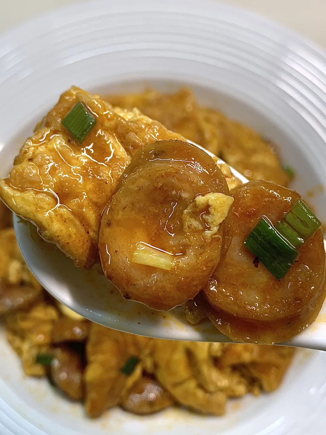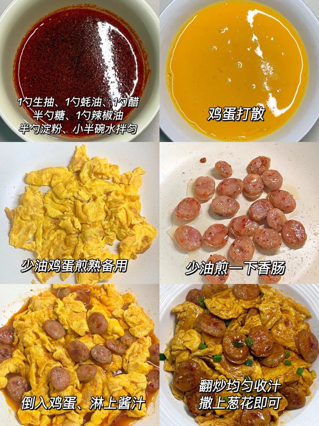 之前总刷到酱香鸡蛋,终于对它下手了! 做起来真的很简单,我还加了香肠,泰香了~ 鸡蛋又嫩又滑,营养又好吃,姐妹们赶紧试试呀~ [彩虹R]食材:鸡蛋,香肠,香葱 [种草R]做法:如图所示~ ~