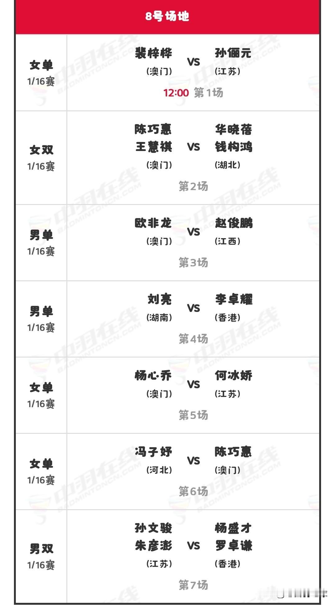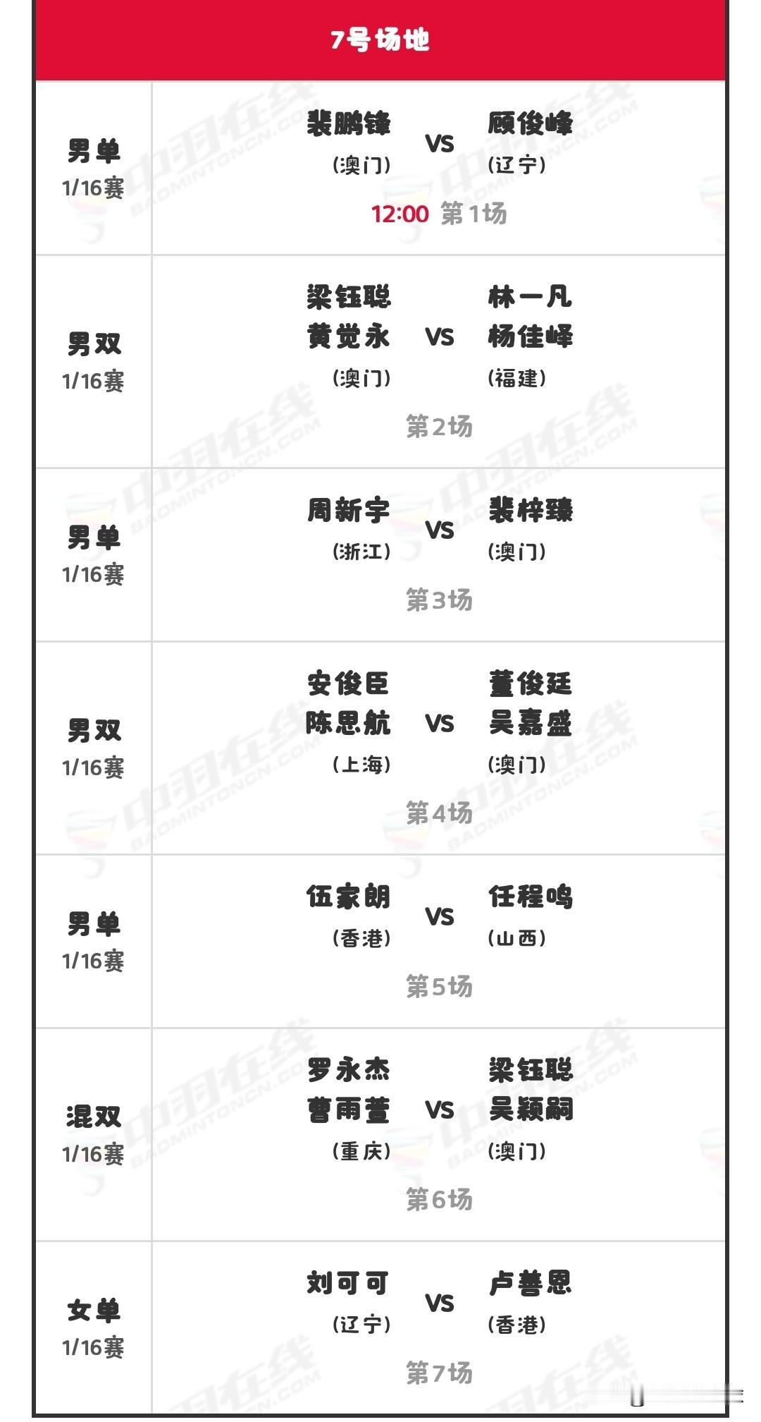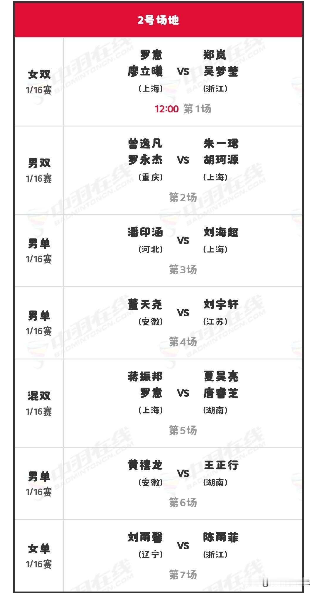11月15日全运会羽毛球单项赛首日对阵安排 昨日为全运会羽毛球比赛团体赛的最后一日。在男团成年组赛事中,江苏队以3-2击败浙江队,荣膺冠军;女团成年组里,浙江队3-0横扫江苏队,摘得桂冠。 今日起,全运会羽毛球比赛步入单项赛阶段。12:00起将开展1/16决赛,届时共有9块场地同时进行比赛。今日详细对阵安排以及昨日男女团成年组决赛详细战报如下: 国羽赛程 羽毛球全运会 羽球赛程 羽毛球 羽毛球爱好者 羽毛球比赛 2025第十五届全运会