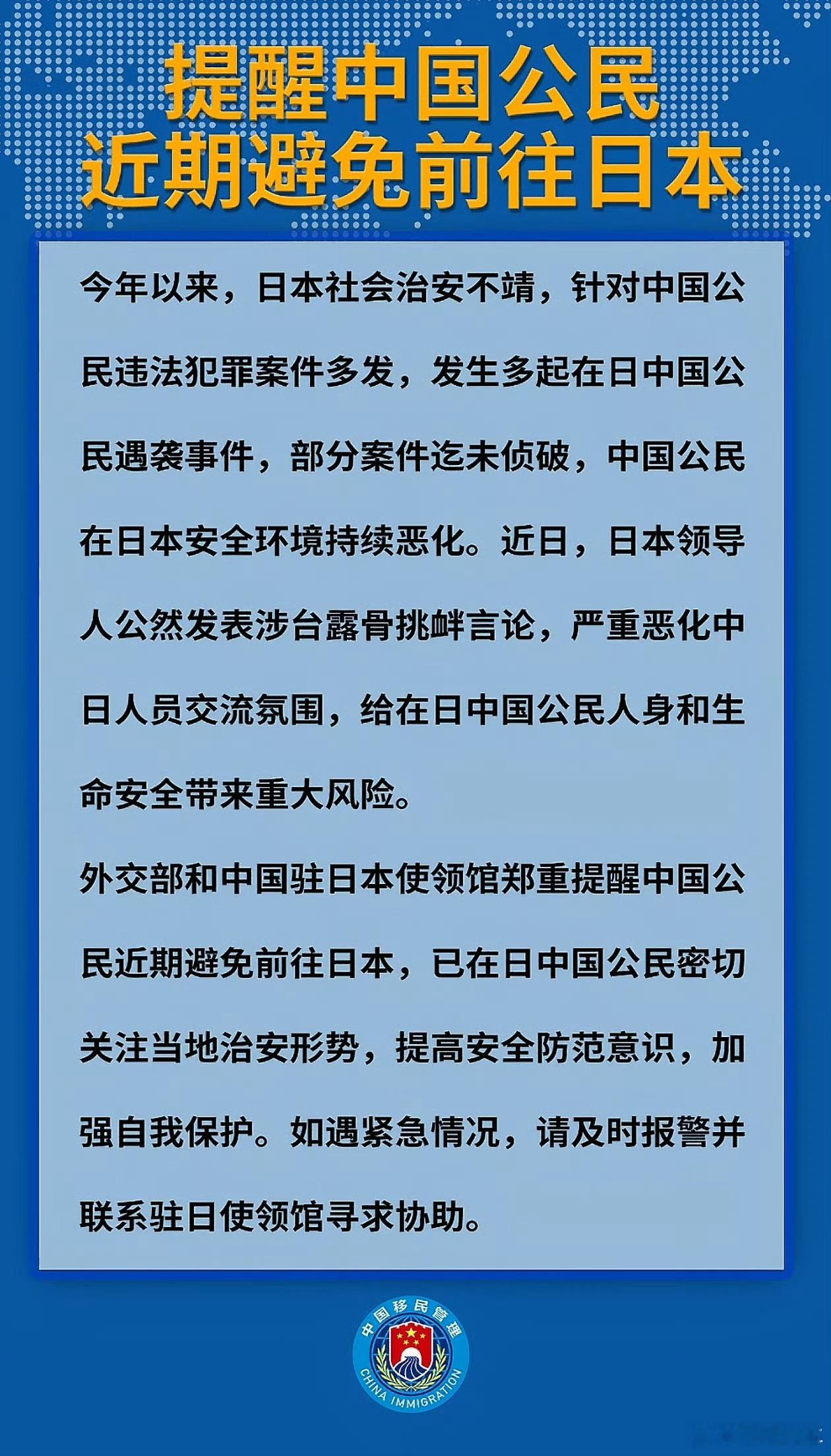 这个属于很明显的暗示了再严重基本就是撤侨了!那样意味着什么大家都懂~现在来看,这届日本政府是“王八吃秤砣”,铁了心了那就别怪咱不客气了~