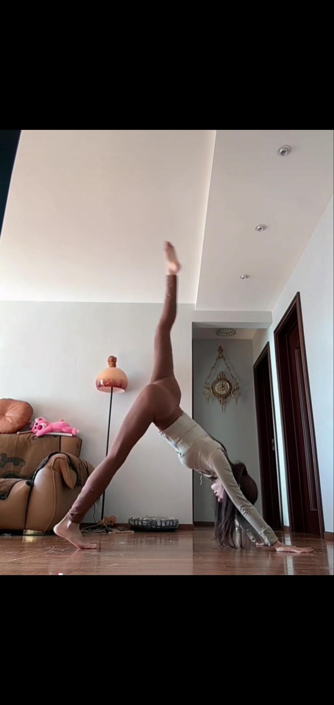 今天休息 天气晴朗 在家瑜伽 我这动作 大家看看 是否标准 漂亮女人 身材重要