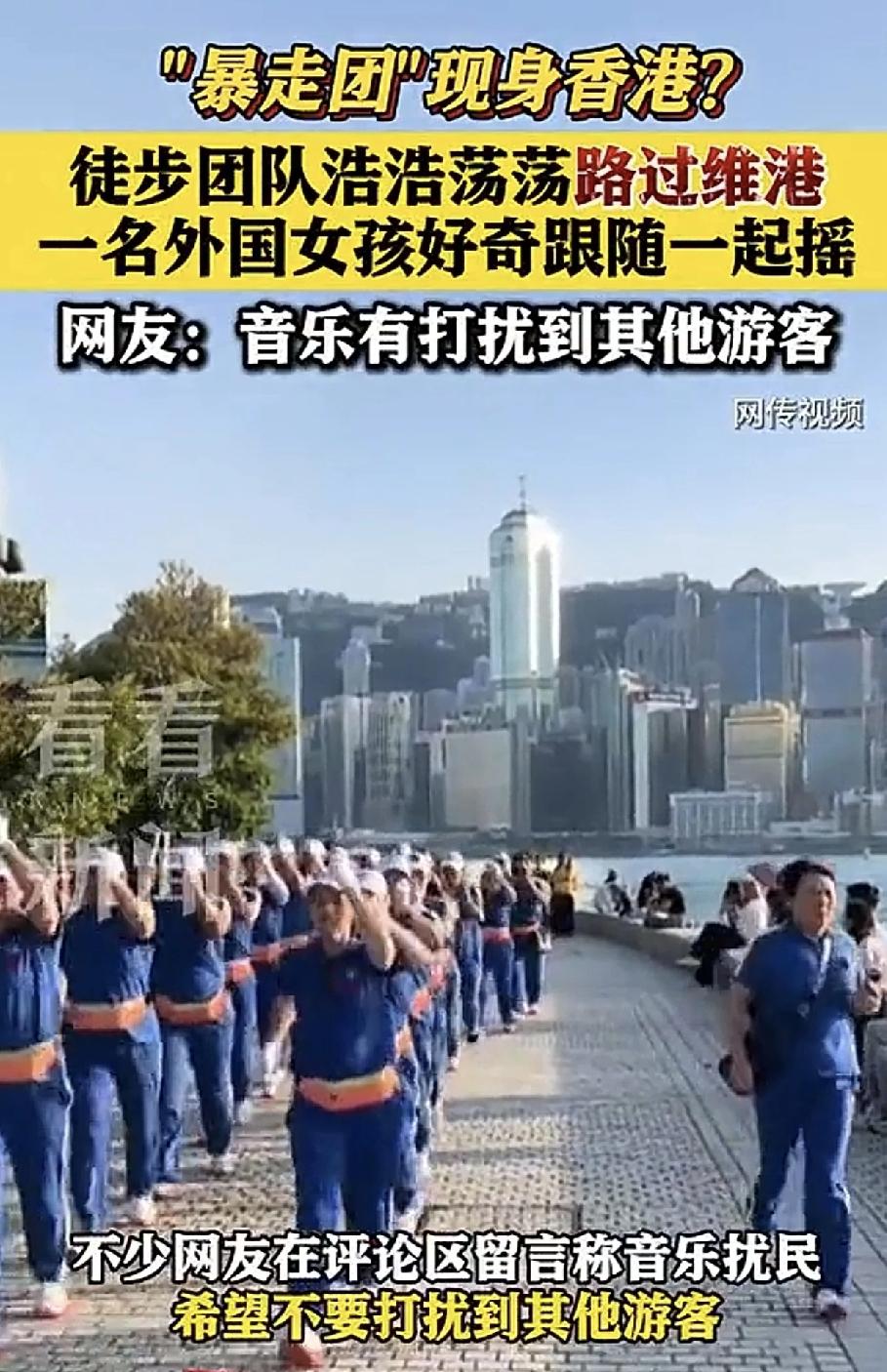 暴走团这魔幻的步伐走向香港,一位外国女孩好奇跟随,这算是个性的张扬,还是占用公共资源侵犯别人权益呢! 他们这种步伐在香港怕是很难展开,现在的香港有一种自闭封闭的自我意识,反倒他们要是走向老美的广场,可以试一下水,如果有警察对他们拔枪相向,就表示国外没土壤,如果有图中女孩这种,那就表示欧美的人实际还更吃这一套。