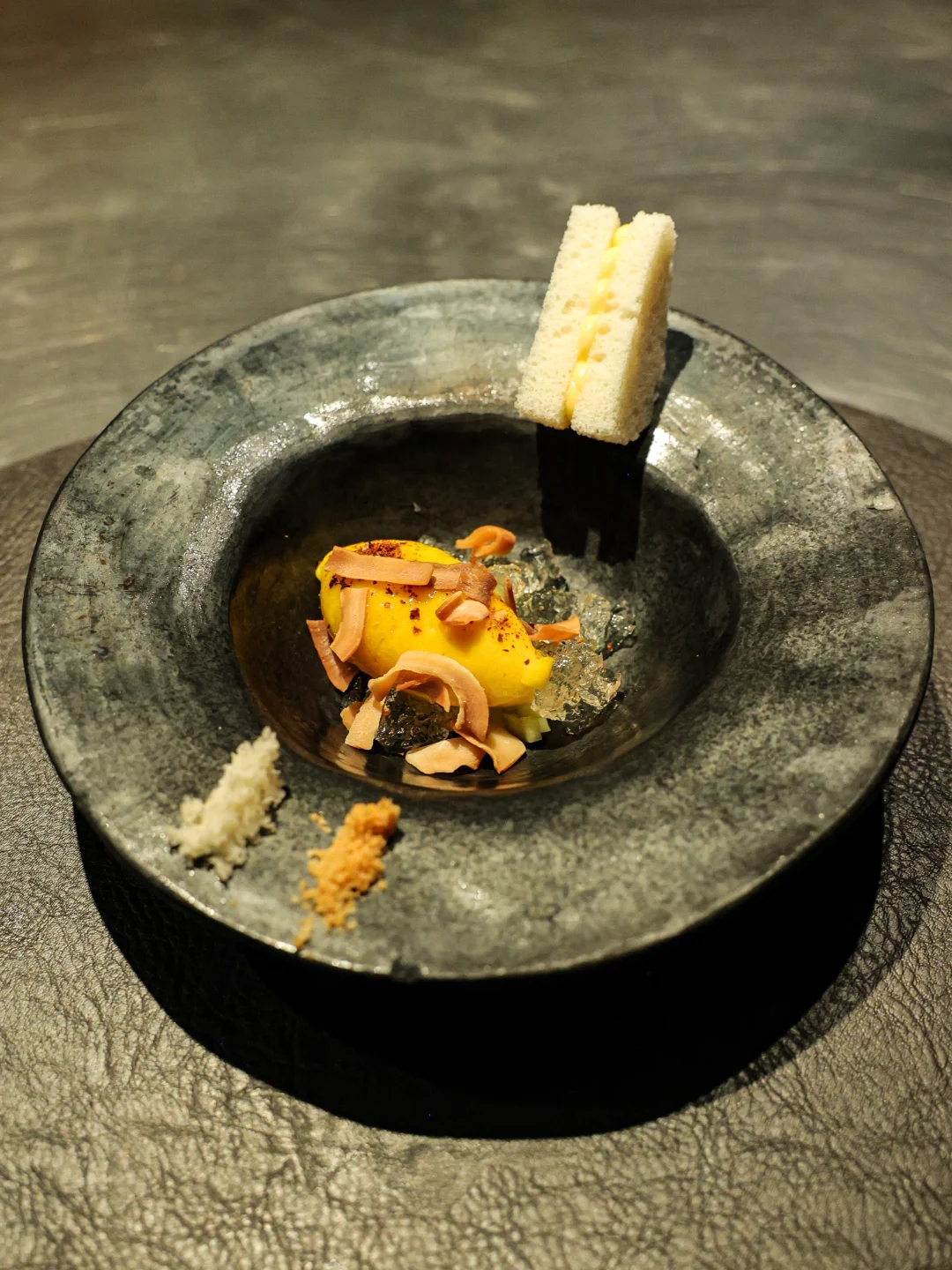 🧾而且吃完也觉得整体是一套完成度非常高的fine dining,并只是带有刻板印象的“约会餐厅”,挑几道印象深刻的菜品聊一聊这vol.9菜单