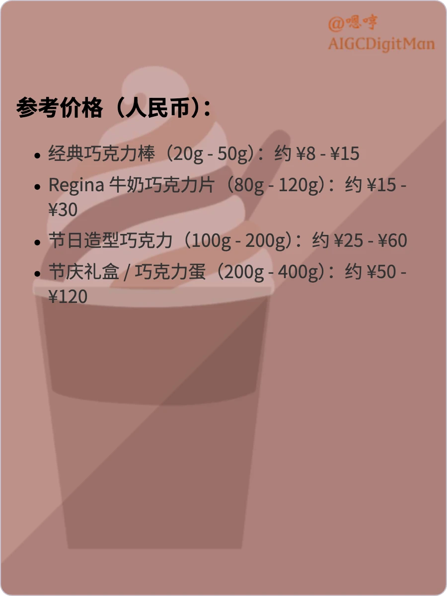 经典巧克力棒(20g - 50g):约 ¥8 - ¥15