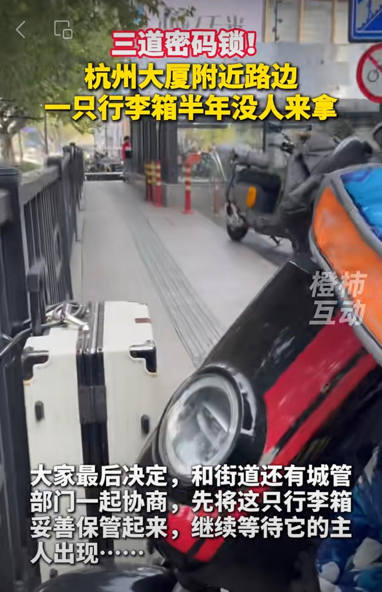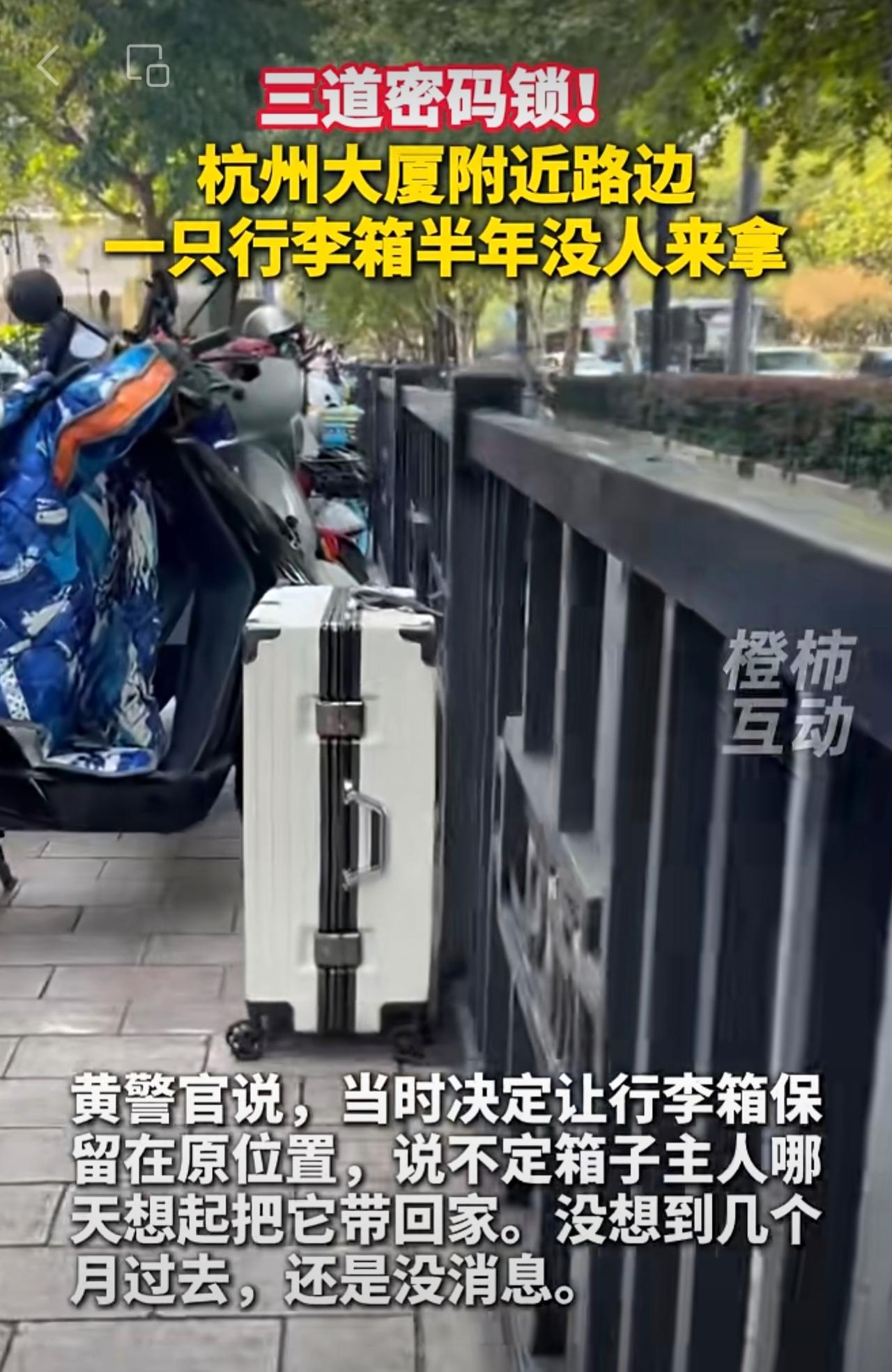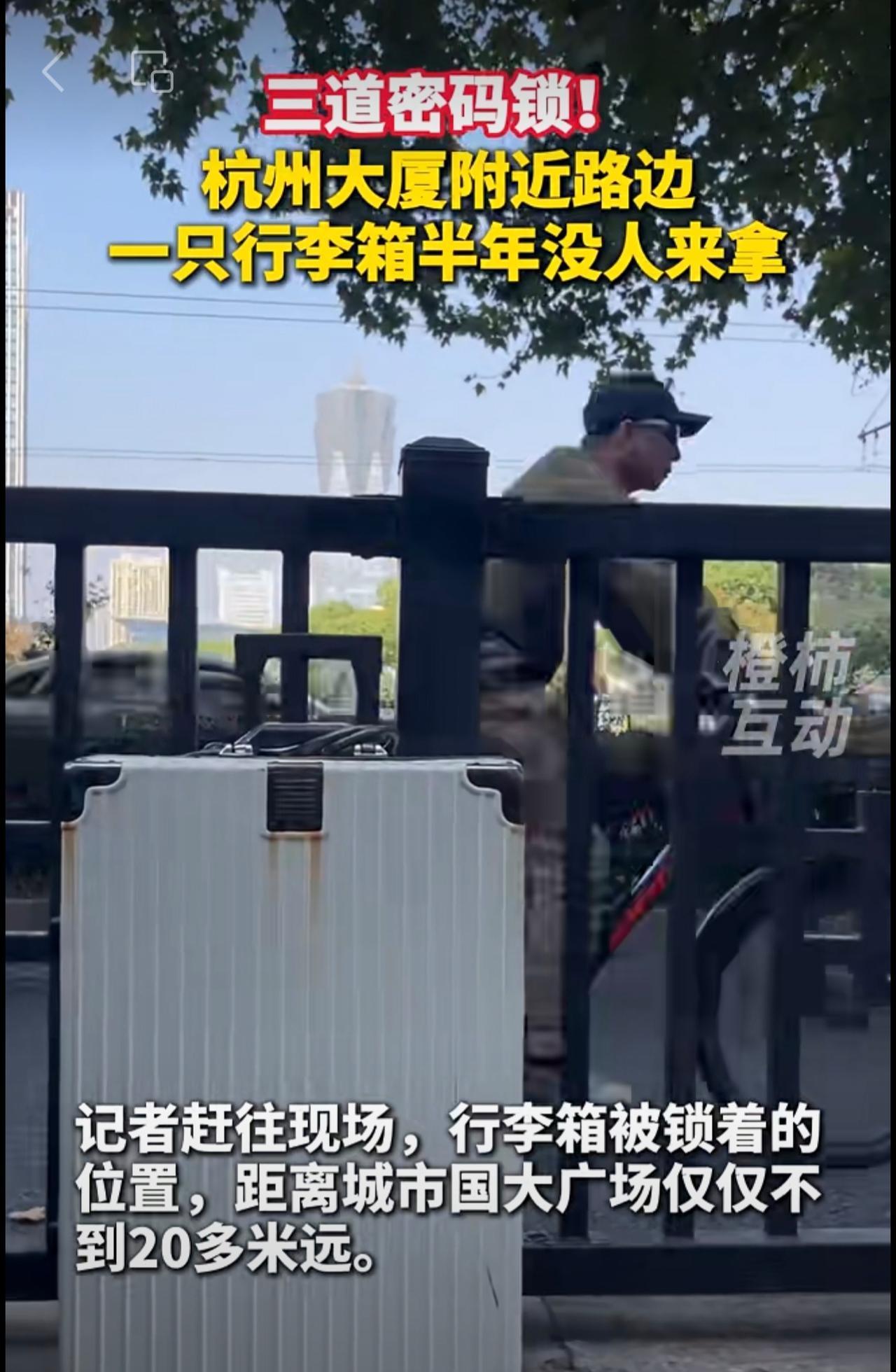 三道密码锁!杭州大厦附近路边一只行李箱,半年没人来拿。