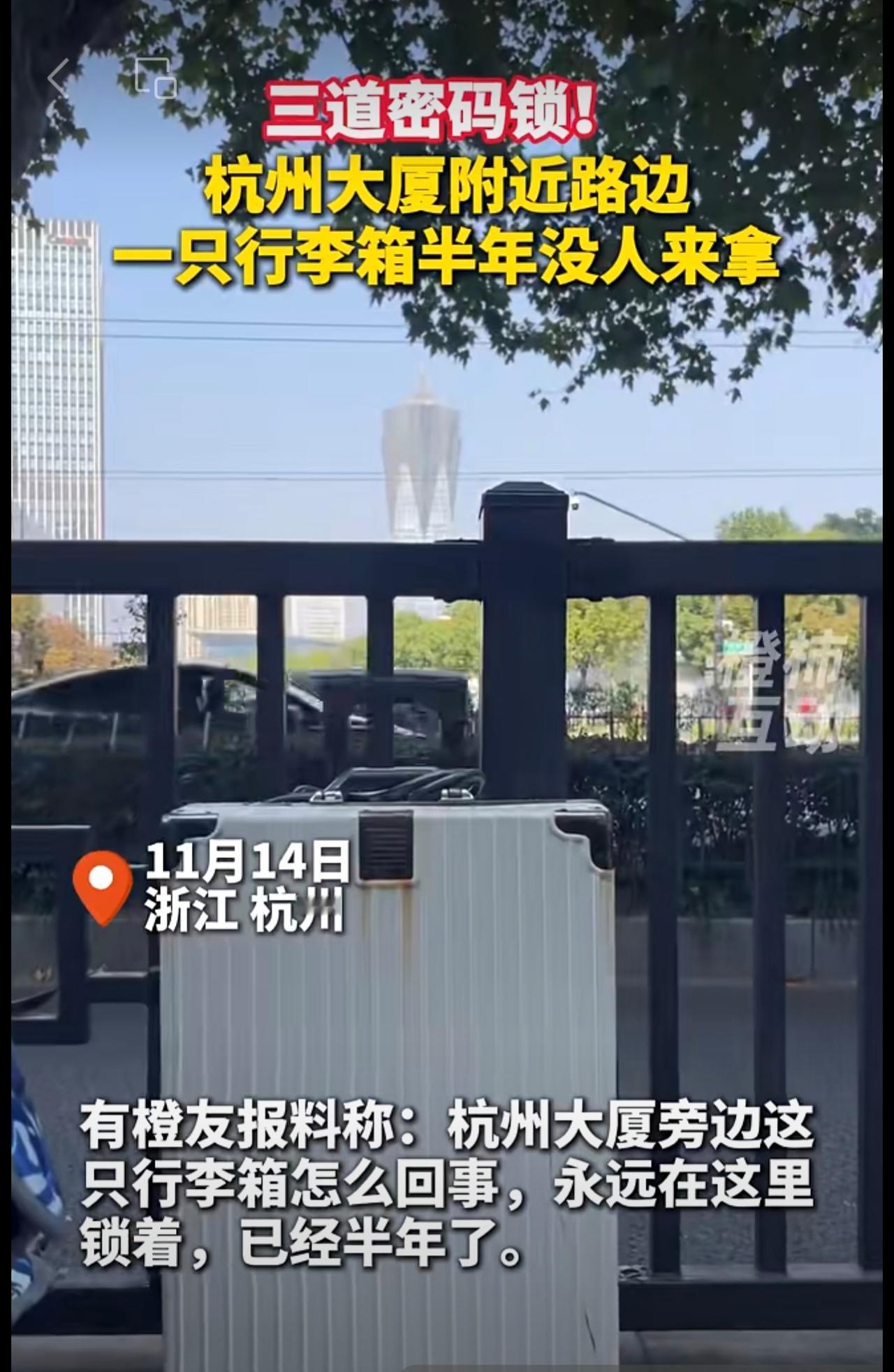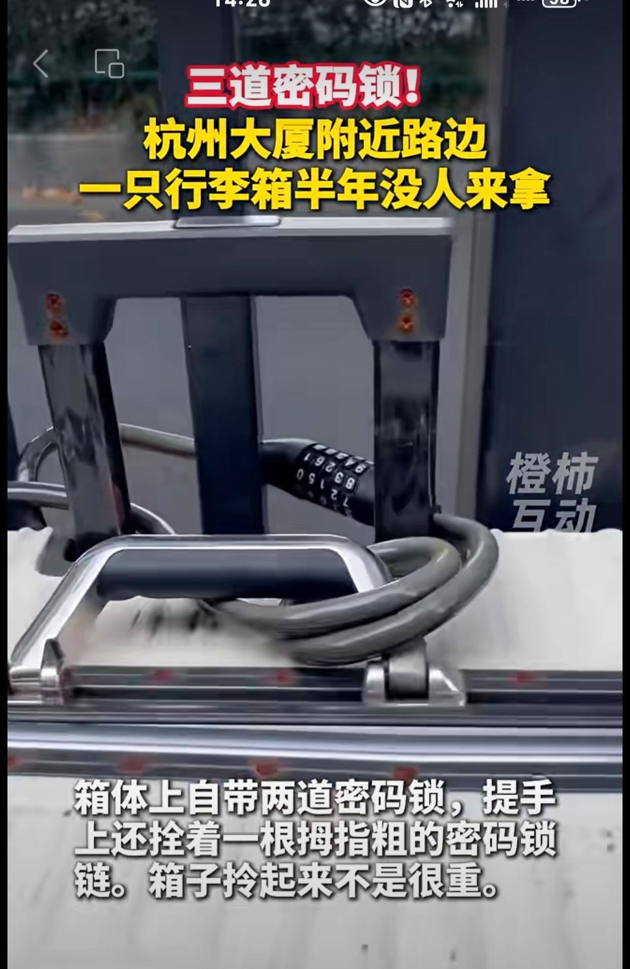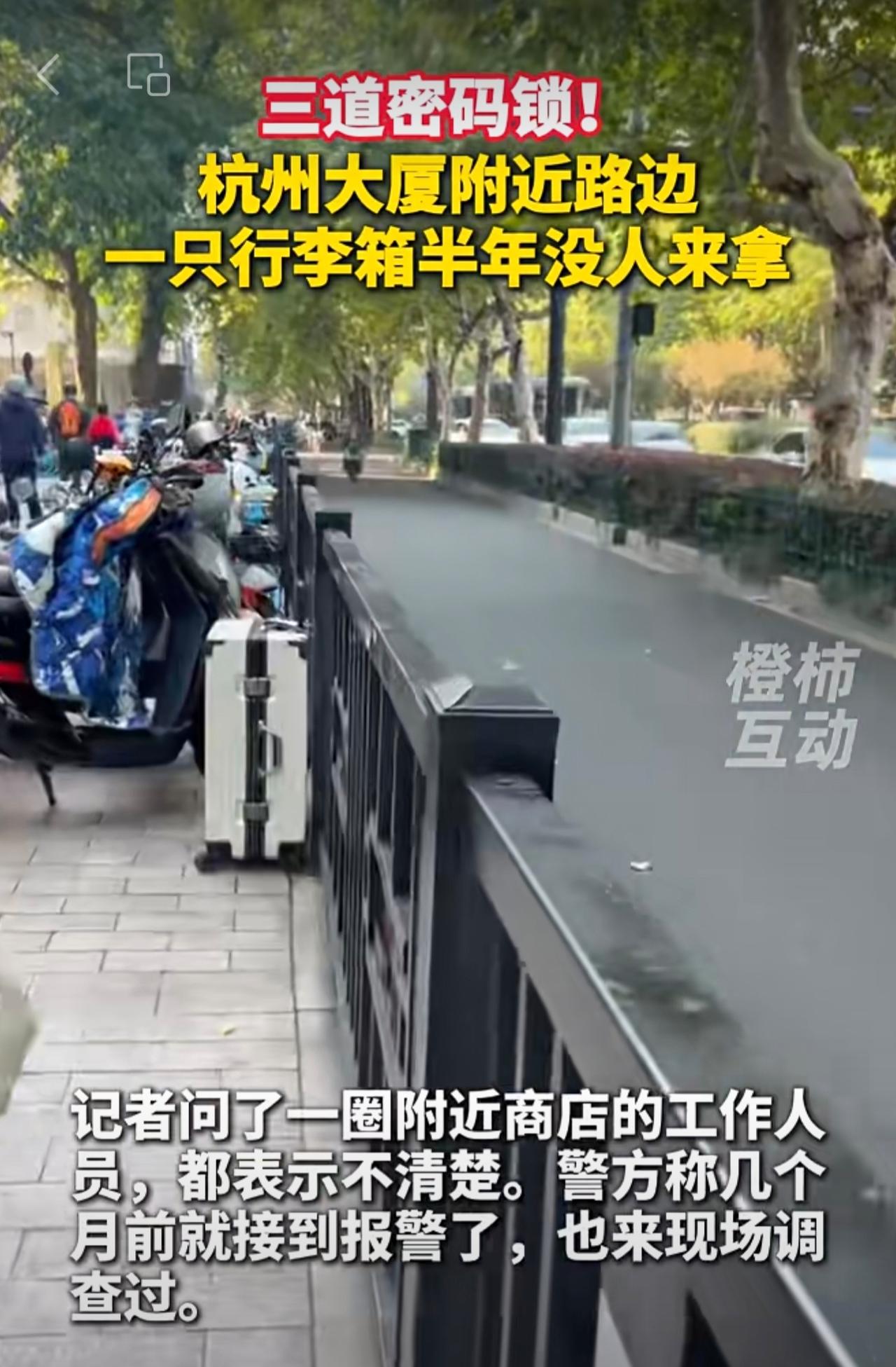 三道密码锁!杭州大厦附近路边一只行李箱,半年没人来拿。