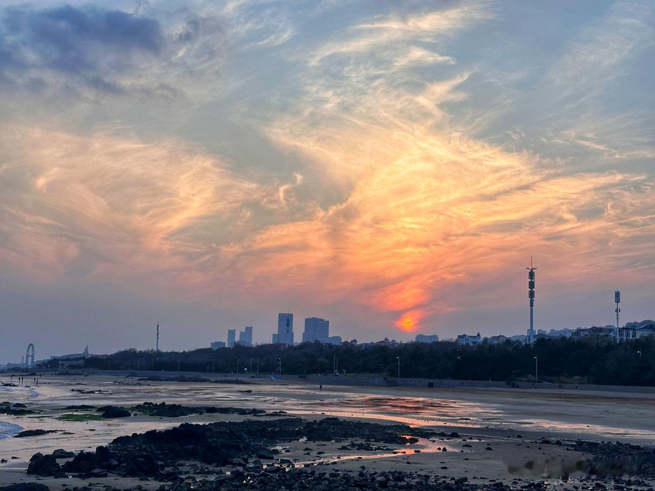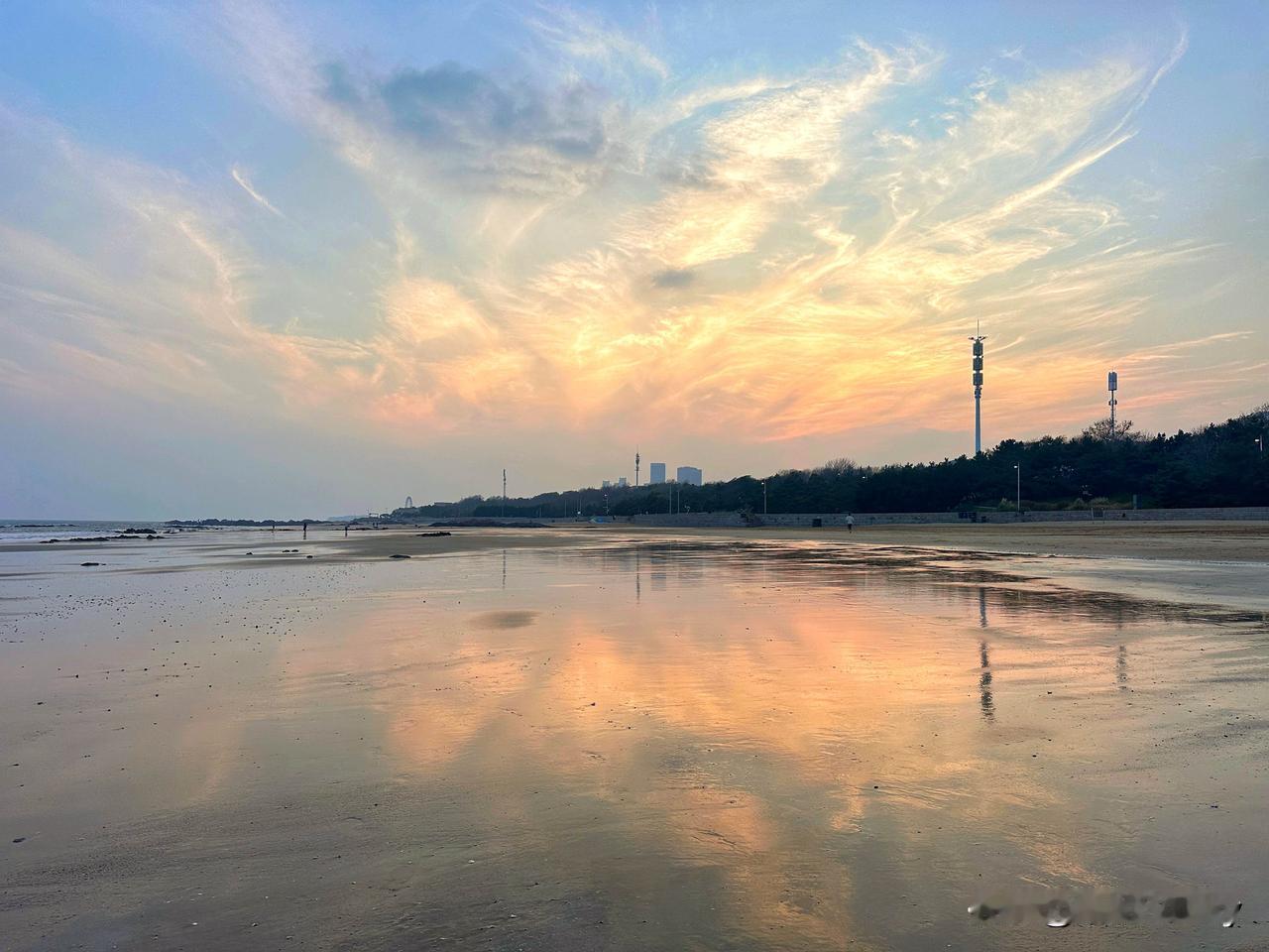 《灘塗鍍橘》 浪尖挑碎半輪橙, 雲絮揉成軟錦綾。 灘石噙著殘日暖, 潮聲漫過晚