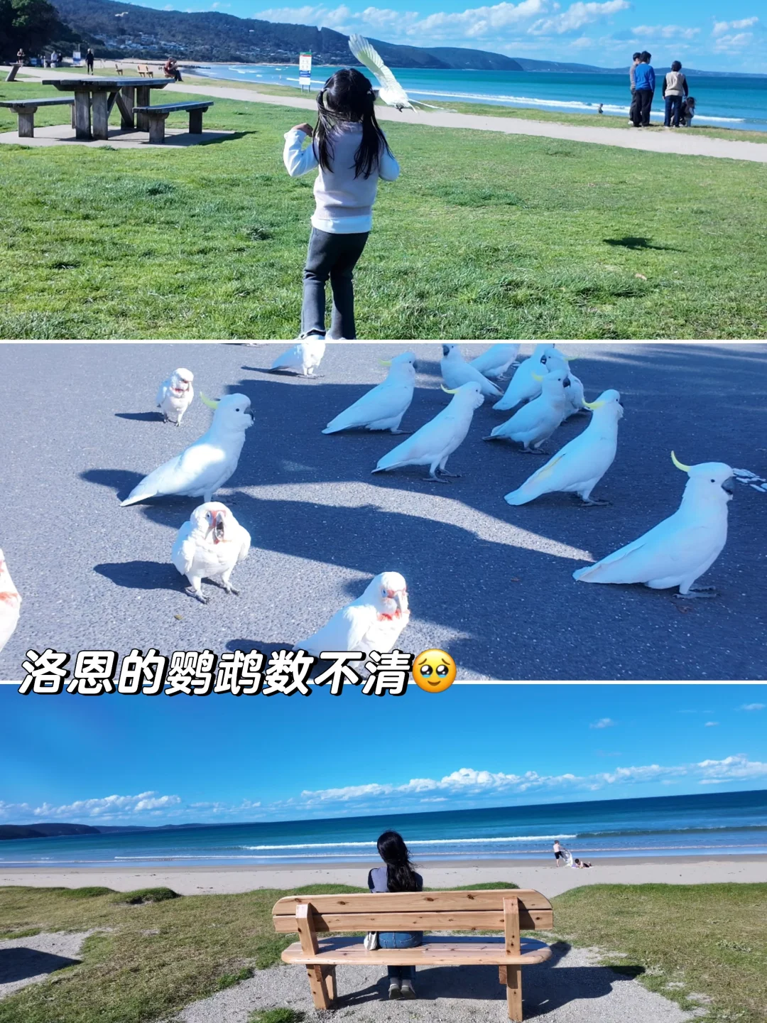 11:40➡️洛恩小镇:葵花鹦鹉满天飞!海边的大草坪上,听取“啊”声一片😂可以尽情互动~导航Lorne beach。在小镇上顺便解决午餐,我们吃的是tottis,网红店,人均60刀,确实好吃[偷笑R]吃完午饭五分钟开到Teddys lookout ,俯瞰大洋路海岸线,很壮观!