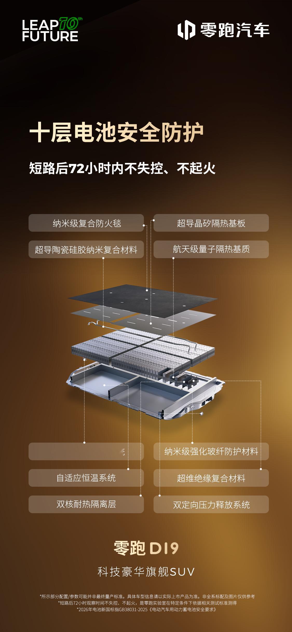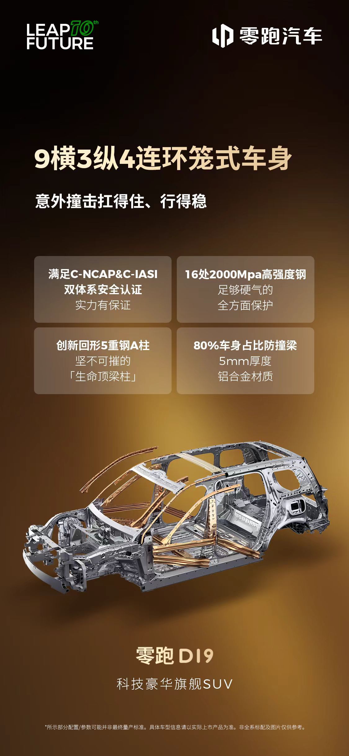 安全感,从不止一面!🚗9横3纵4连环笼式车身:硬核守护每一程⚡主动安全系统:危急时刻主动避让+刹停,从容应对突发路况🔋10层电池安全防护:短路72内小时不起火,出行更安心零跑D19,以科技铸就豪华,用实力诠释安全!👉点击了解,你的移动安全堡垒