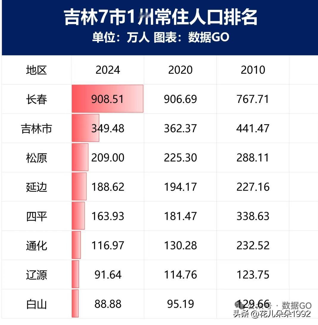 吉林省只有长春市是人口净流入城市。 长春居然有九百万人了[赞]