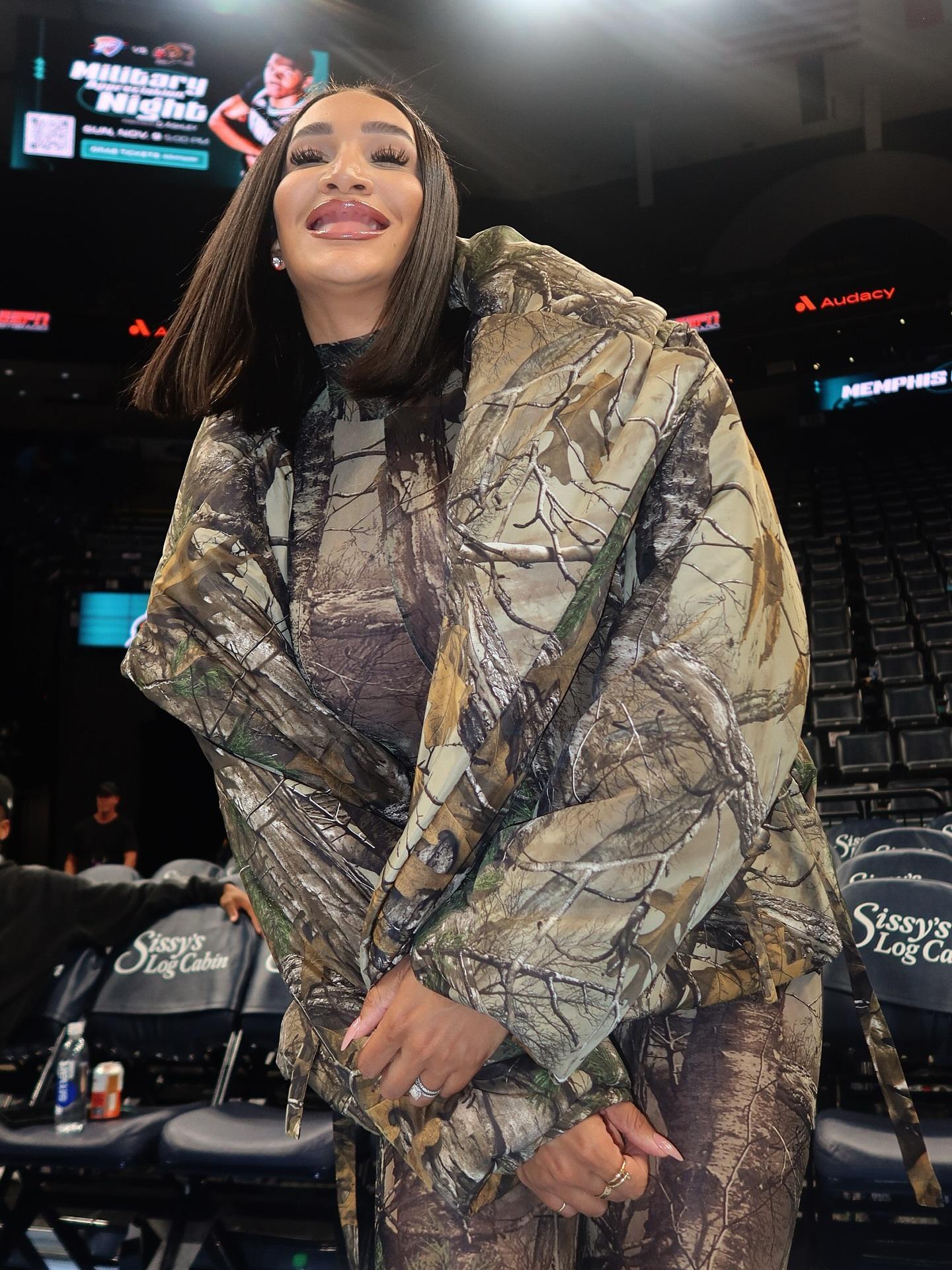 波普夫人5天前坐阵灰熊主场,ins:就算穿了迷彩服,我也藏不住自己的光芒 🪖波普评论:绝了!!!😏😏😍😍 我的宝贝!!全是我的!!